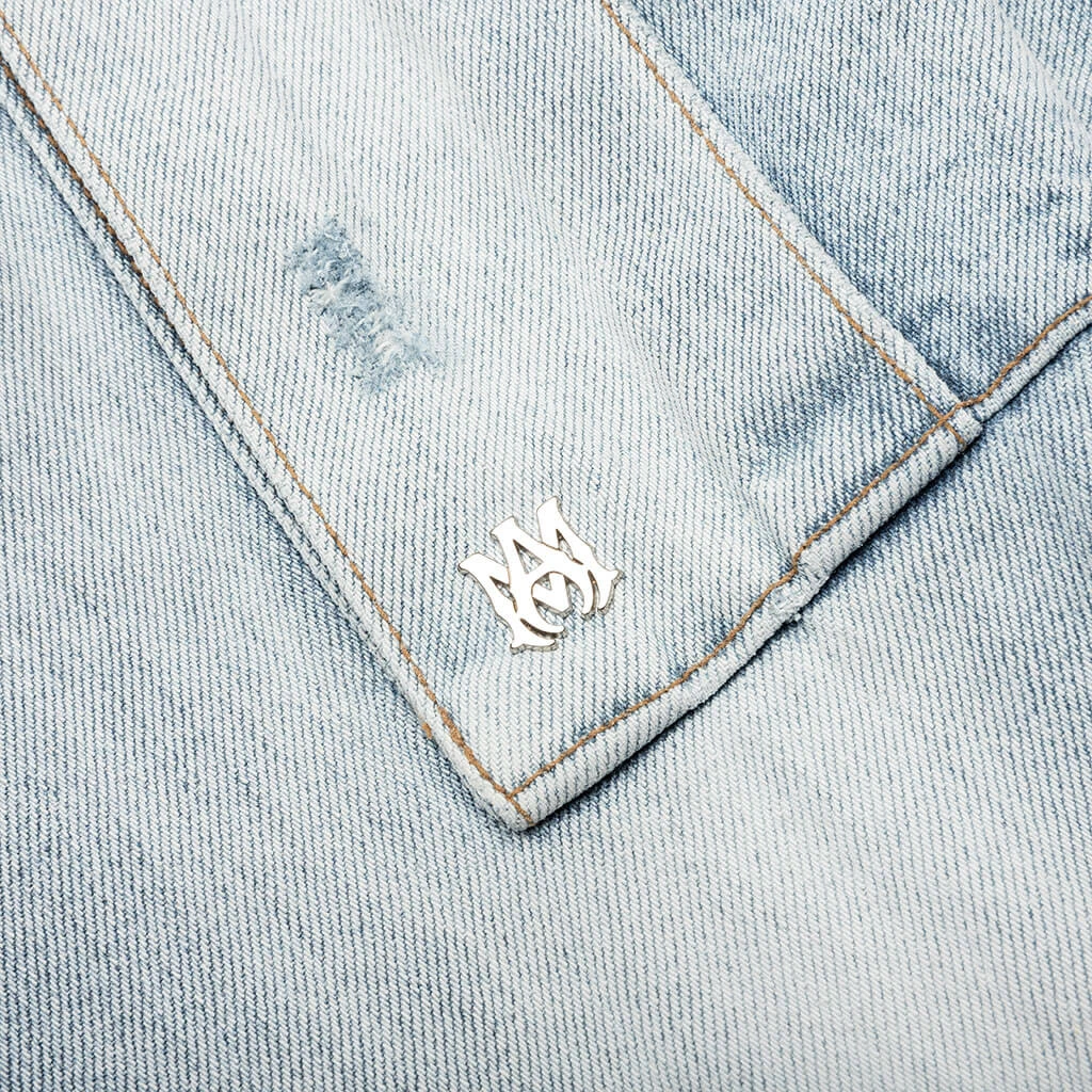 The Amiri M65 Cargo Flare makes an impression with its cotton construction and button fly. Side slant pockets, side cargo pockets, and back flap pockets make an impression, while the split sides incorporate snap button closures for a functional touch. The faded wash and light distressing wrap up the rest of the design.