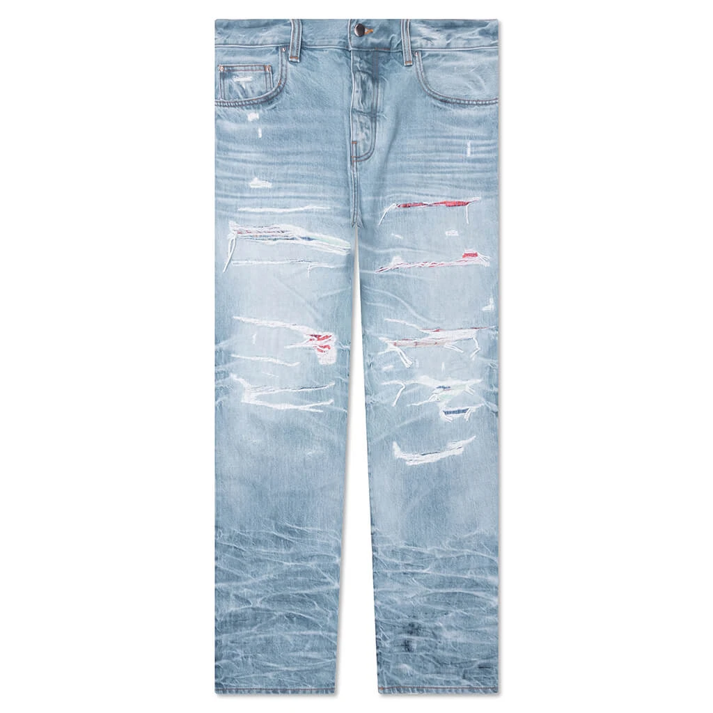 Made from cotton, the Amiri Straight Fit Aloha Patch Jean makes a statement in any apparel collection. The design features a vintage and distressed effect, while the button fastening and straight leg fit makes a statement as well. The embroidery at the rear paired with three pockets at the front and two rear pockets finishes the look.