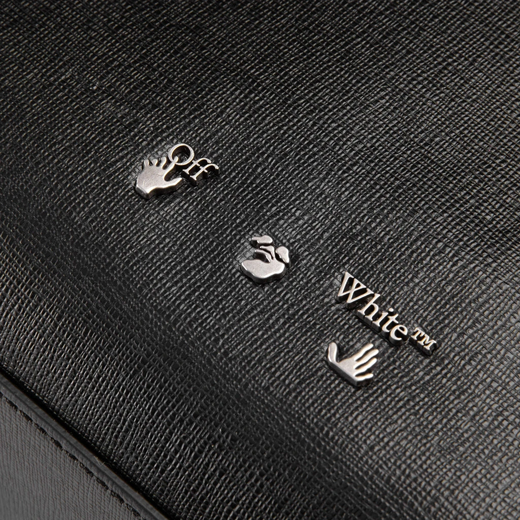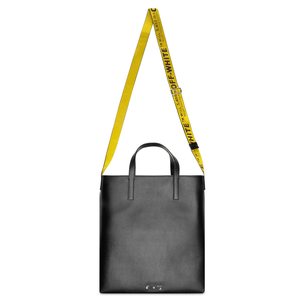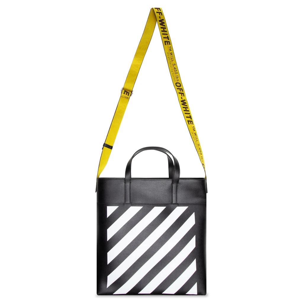 The Binder Diag Saffiano Tote incorporates an elevated approach to the traditional functional tote bag. Featuring a complete leather construction, the design features top handles as well as an adjustable and removable yellow industrial strap. Front diagonals are screen-printed along with a black Off-White logo plaque, which completes the look.
