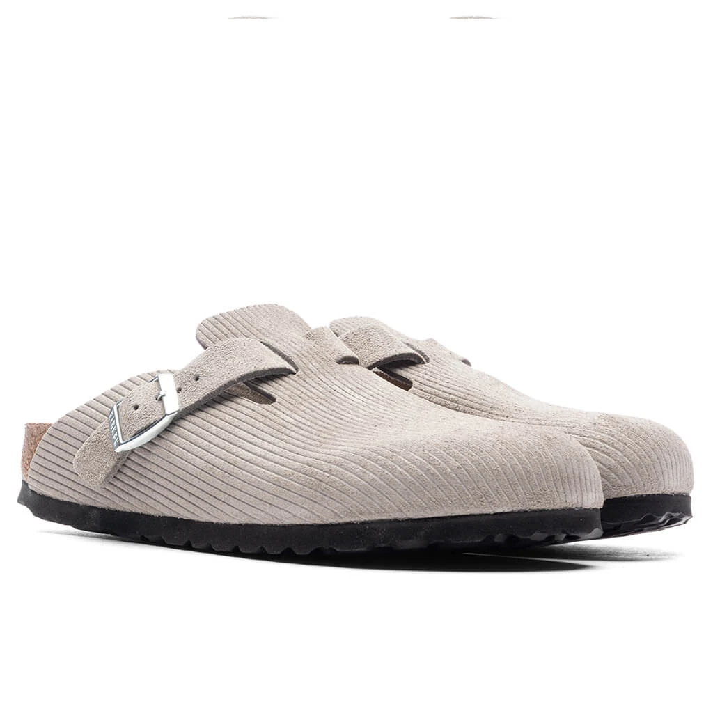 The iconic Boston clog makes an arrival once again in the embossed suede upper paired with a suede footbed lining. A contoured cork-latex footbed helps create additional comfort. A tonal, textile-inspired buckle at the adjustable strap and EVA sole wraps up the rest of the design.