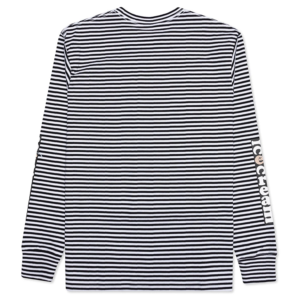 Founded in 2004 by the multi-faceted Pharrell Williams, Icecream is his vibrant approach to expressive fashion. A subsidiary of Billionaire Boys Club, the visionary artist creates playful designs with bold logos & colors across a variety of clothing and accessories. The Cherry long sleeve is adorned with thin black & white stripes that wrap around the tee and sleeves. There is also the abstractly-written “Icecream” logo across the chest. Pictured is the Icecream Cherry L/S Knit in White.