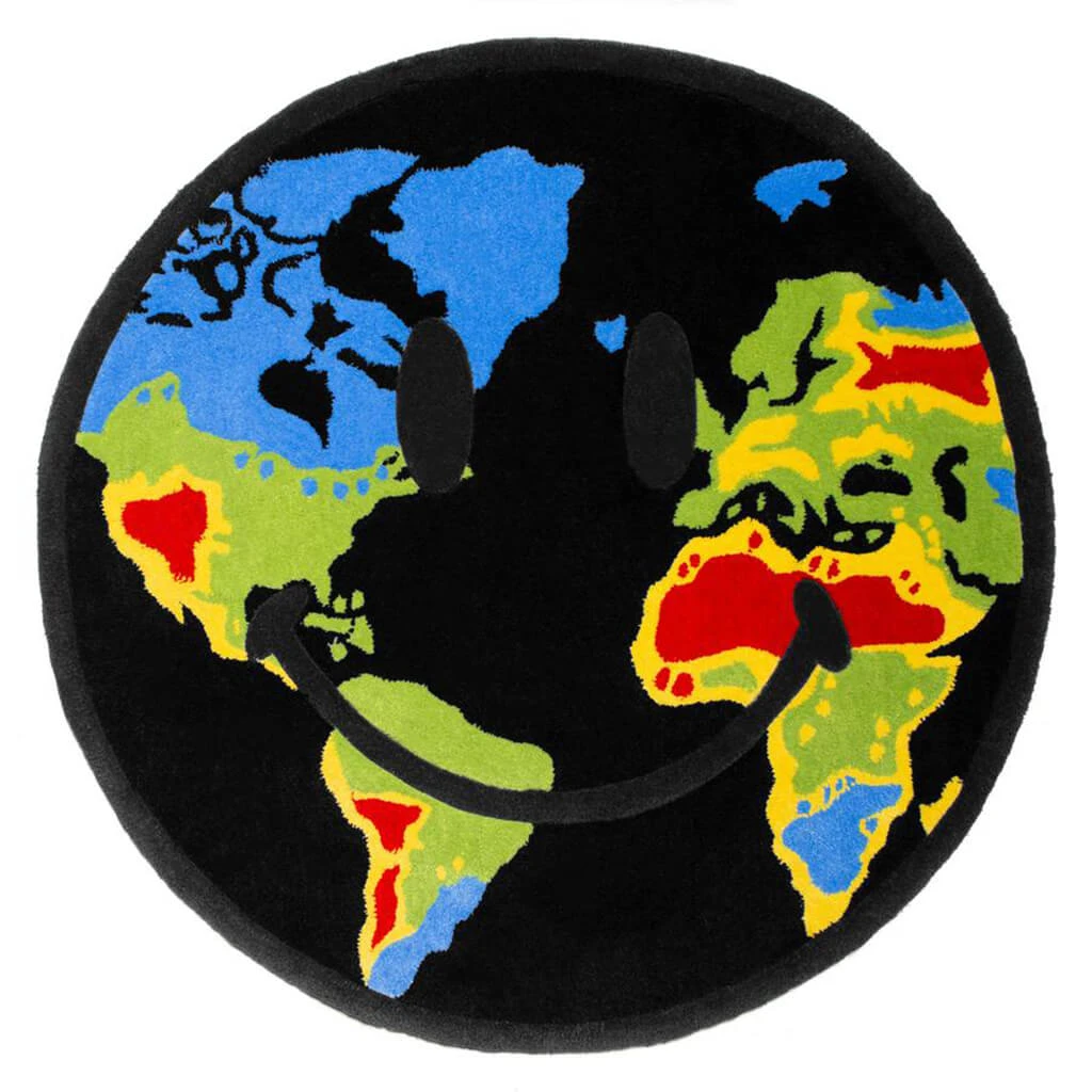 Chinatown Market shines a light on new imagery and signature branding within their Smiley Rug Western Hemisphere. Its heavyweight and plush design feature knitted graphics for a distinct look. The rug is a statement piece that can elevate any room.