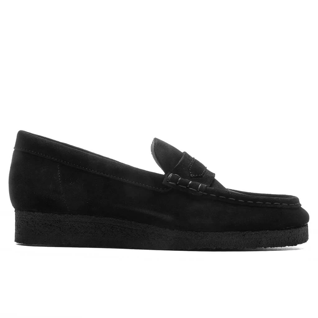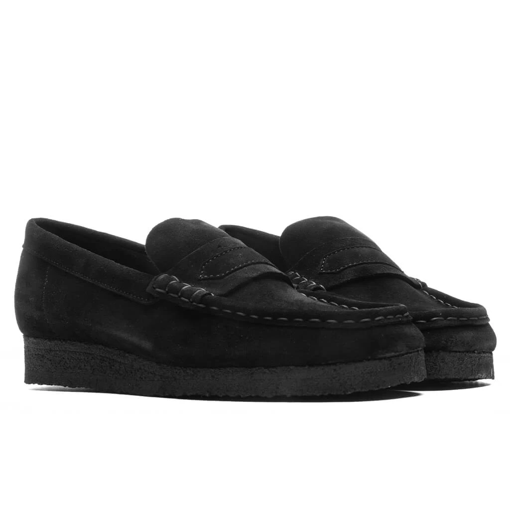 The archival Clarks Women’s Wallabee Loafer takes on a bold black look for Autumn/Winter ’23. Crafted from premium suede uppers, its chunky tonal sole nods to timeless design, while hand-stitched apron seams enhance its crafted look and feel. The part-recycled natural rubber pebble crepe sole adds a durable touch.