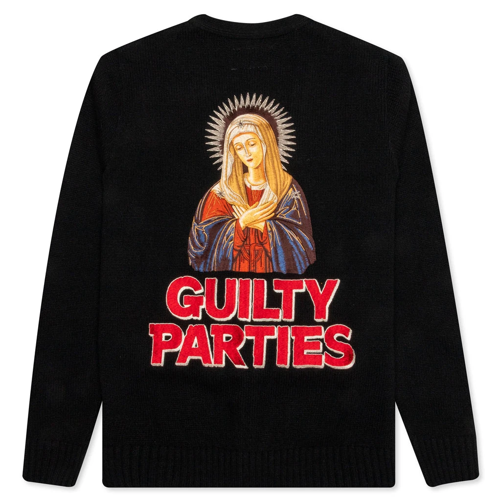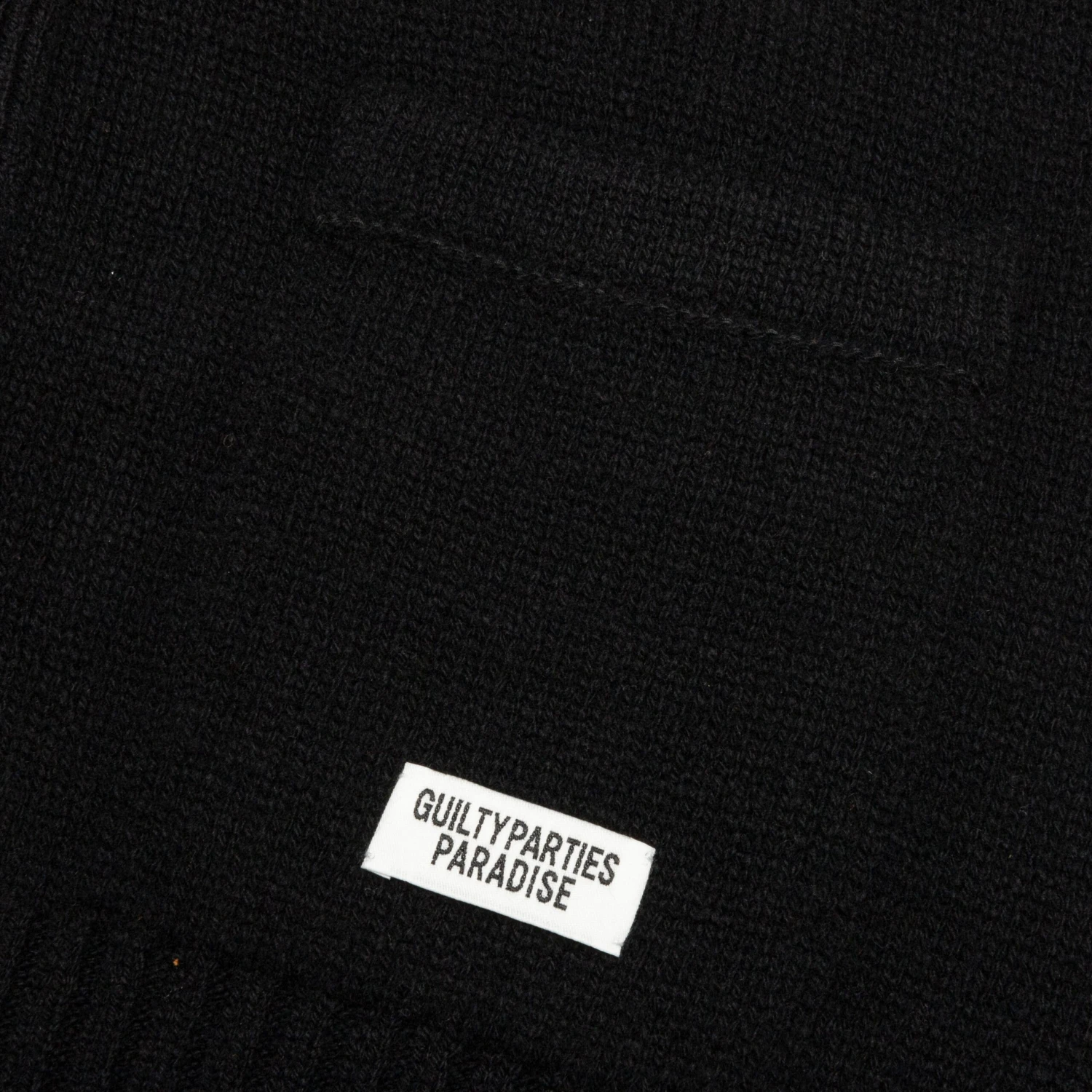 Adapting religious icons and punk graphics falls along Wacko Maria’s aesthetic. The Type-4 Classic Cardigan is a casual piece with button closures. The back is an embroidered image of the signature Virgin Mary motif along with their popular saying, “Guilty Parties.”