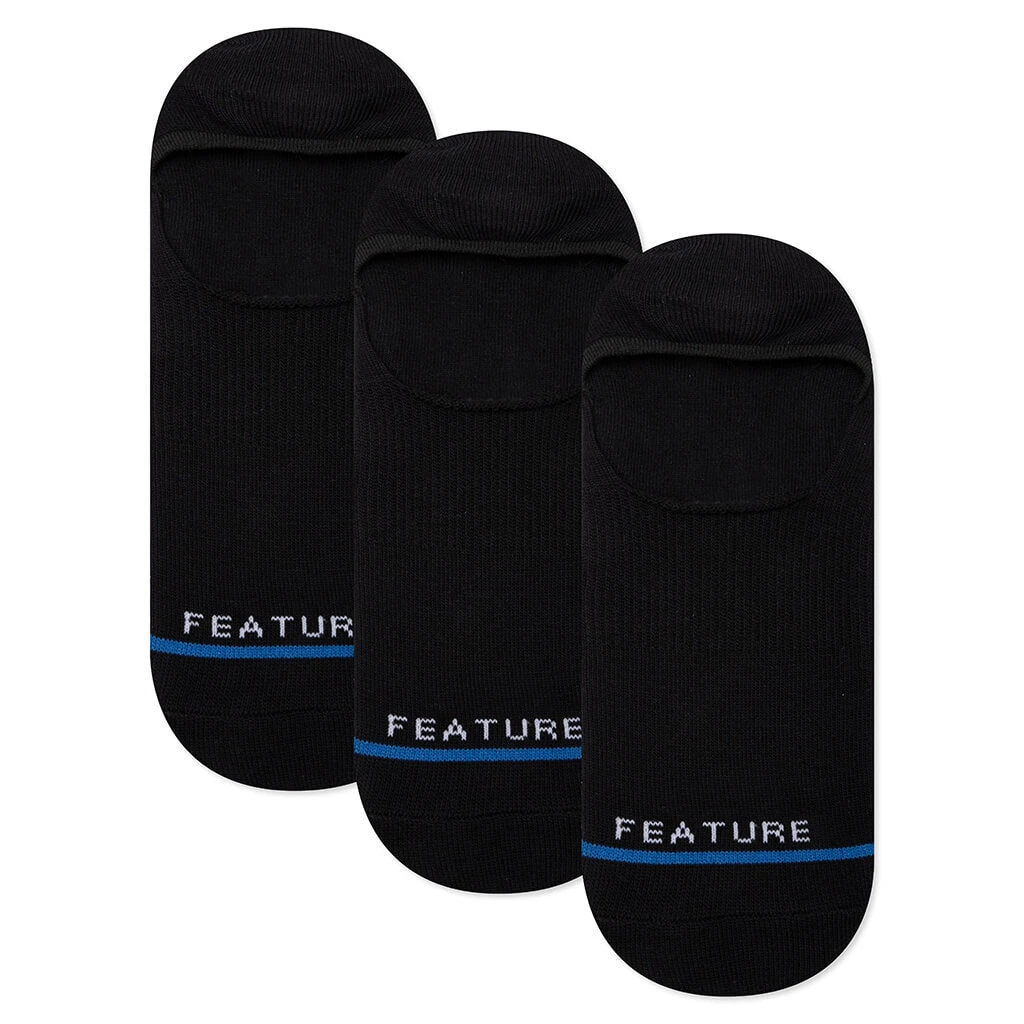 Our No Show Sock can be easily implemented into any outfit as it highlights our distinct branding and premium fabrication. In a pack of three, the socks highlight a hidden aesthetic making it seamless with any sneaker or shoe. A blend of varying fabrics offers a comfortable and molded fit that is also lightweight and breathable. Our signature FEATURE branding is knitted while our All Things Good mantra is printed upon the base reminiscent of our aesthetic.