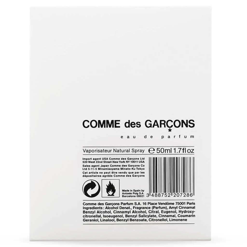 Comme des Garcons Parfum was introduced in 1994. Similar to its fashion roots, CDG parfum is known to break the rules by using ingredients in a non-traditional way developing new and unique scents. Parfums are made to be unisex providing a scent for everyone to enjoy. Their bottle designs can be defined as non-traditional as well with asymmetrical shapes that are designed to fit in the palm of the hand. Pictured is the Comme des Garçons Eau De – 50ML.