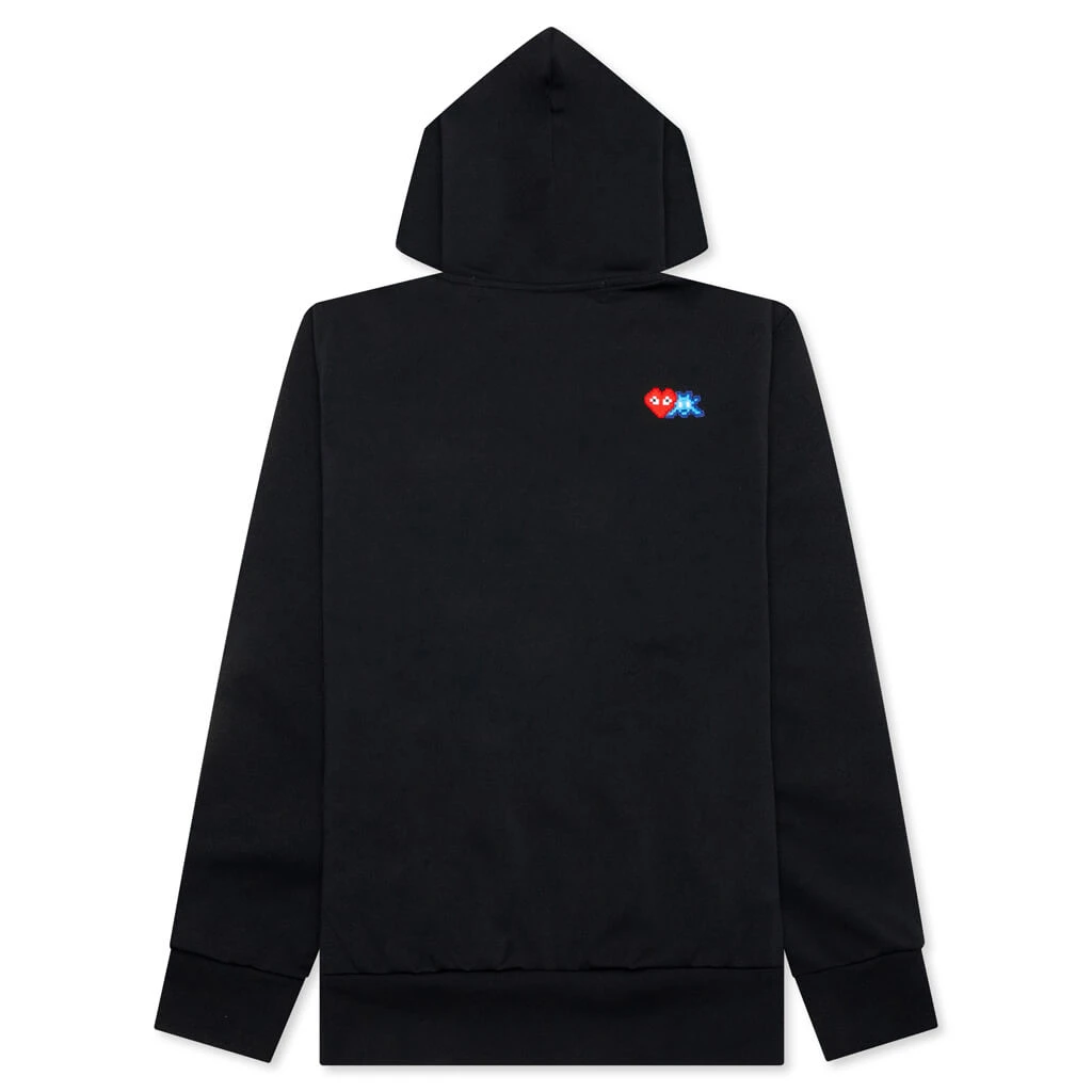 Taking on a cotton construction, the Comme des Garcons PLAY x Artist Invader Full-zip Hoodie is the latest release in the collection. A drawstring hood is placed, while side welt pockets paired with the ribbed detailing offer added dimension. The signature embroidered pixelated heart motif finishes the look.