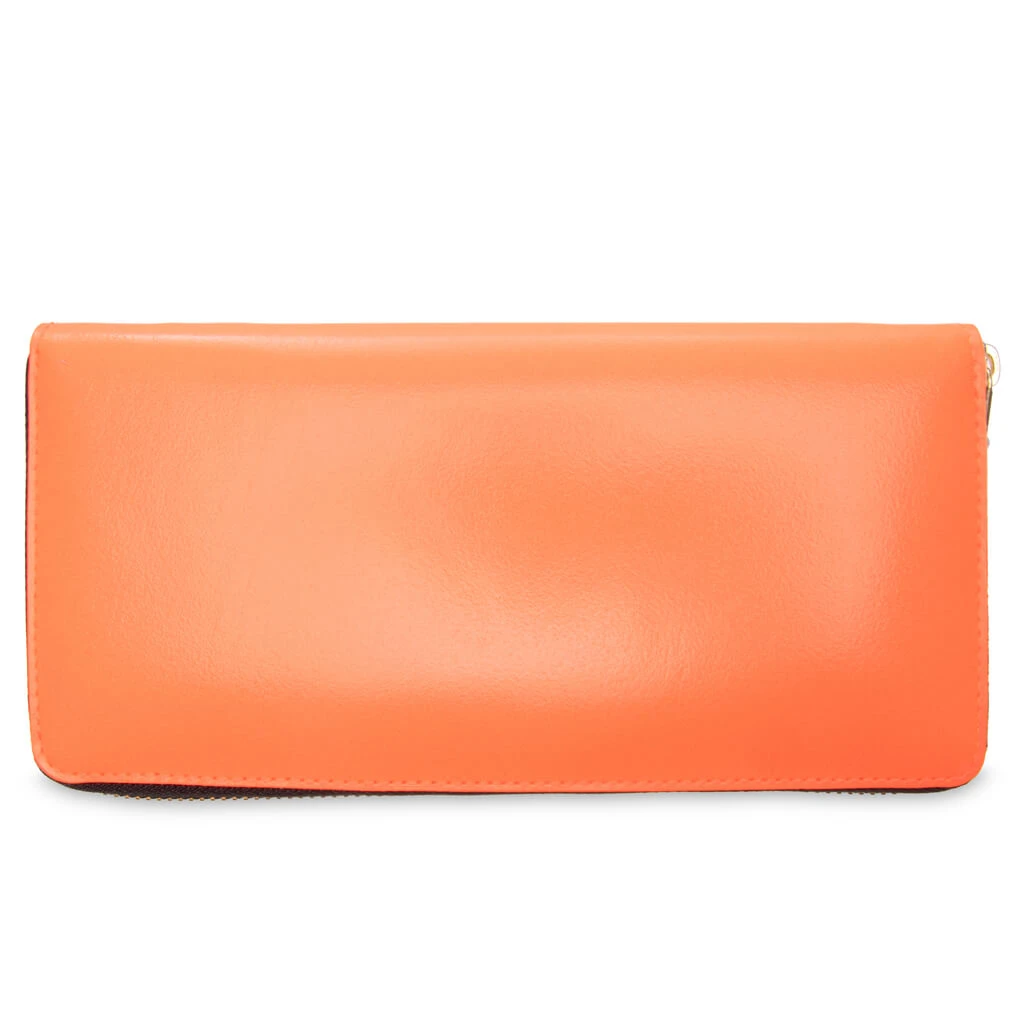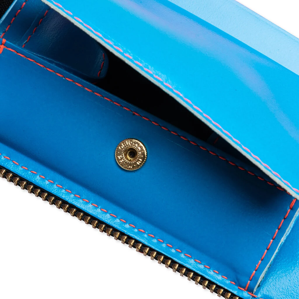 Internationally renowned fashion label Comme des Garçons introduces the Super Fluo Wallet. Crafted from goat leather, this billfold design features a smooth leather finish with a note pouch and interior credit slots. Gold foil branding ties together the look.