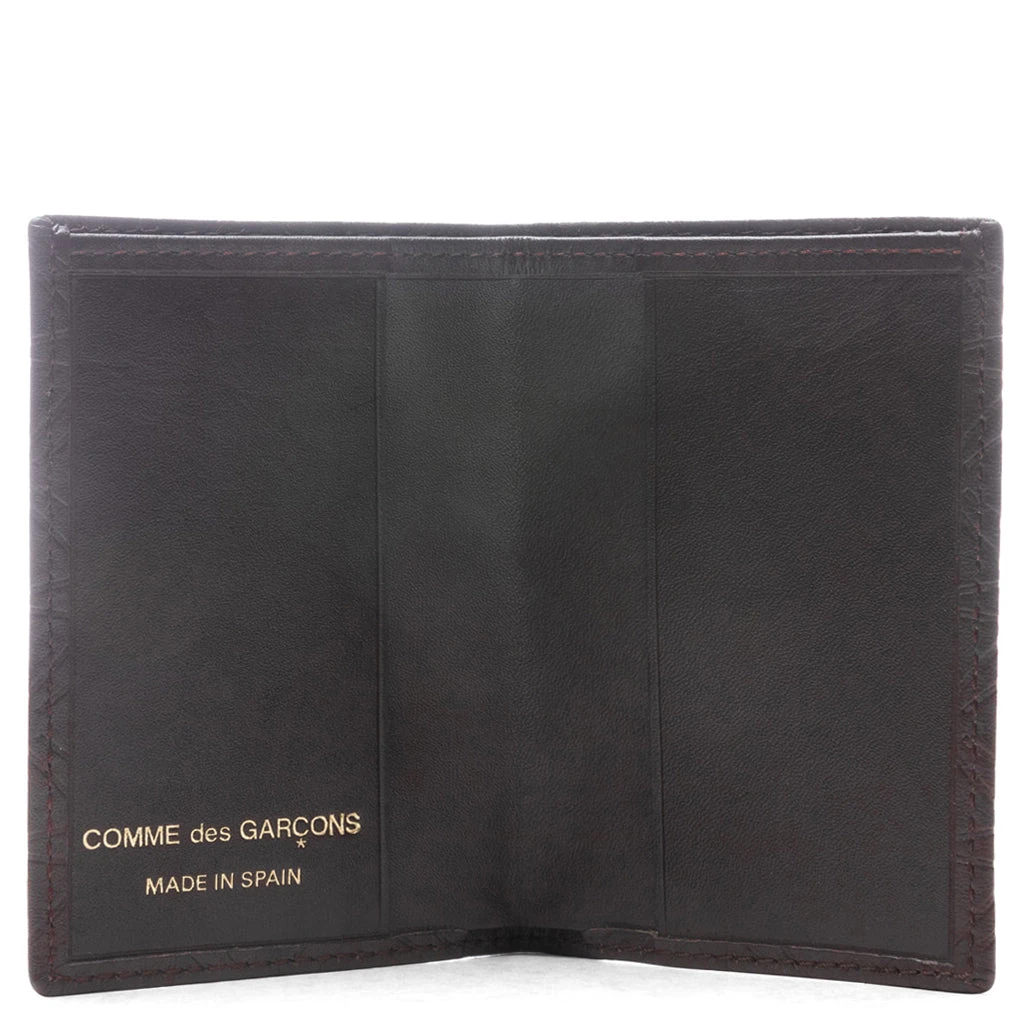 The Comme des Garçons Leather Line Wallet is a must-have accessory for any collection. Composed of Italian cowhide leather, the accessory features a bi-fold construction and embossed detailing. The two large card slots and cash pouch add additional functionality. The gold foil branding finishes the design.