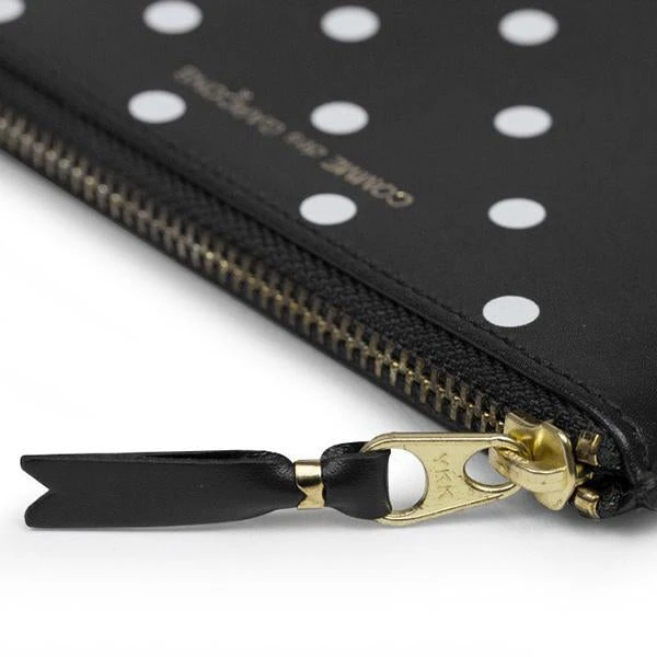 The avant-garde designs of Comme des Garçons have cast contemporary fashion in a new light. This SA8100 wallet is constructed from premium leather and features a main compartment with zip closure. Pictured is the Comme des Garcons SA8100 Polka Dot Wallet in Black.