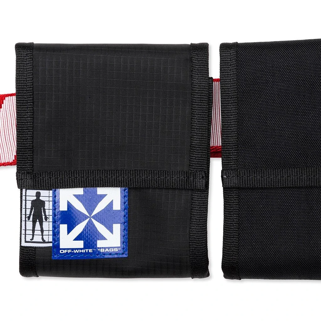 Off-White c/o Virgil Abloh is a fashion label rooted in current culture at a taste-level particular to now. Manufacturing is based in Milan with a core value of the brand to be made from the best available and particular opinion regarding fabric, fit and fabrication. Pictured is the Off-White c/o Virgil Abloh EQ Two Pocket Fannypack in Black/Red.
