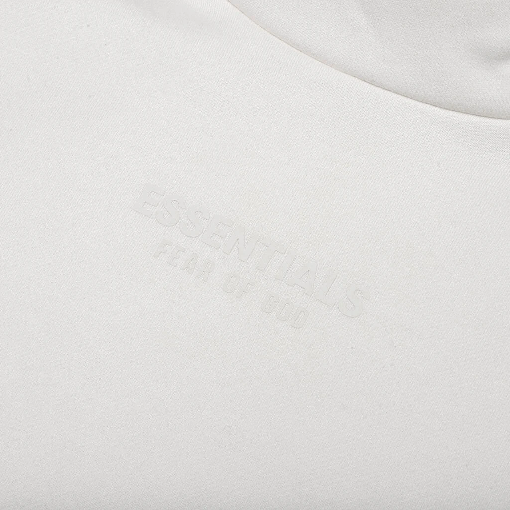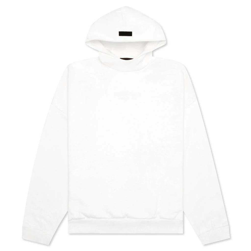 The Fear of God Essentials hoodie provides volume in the body and sleeves to create a soft, round + cropped silhouette. A mock neckline and side seam pockets provide functionality. The Essentials Fear of God logo is sized subtly at the center front in a rubberized soft-touch appliqué, and a Fear of God rubberized label is on the hood that finishes off the design.