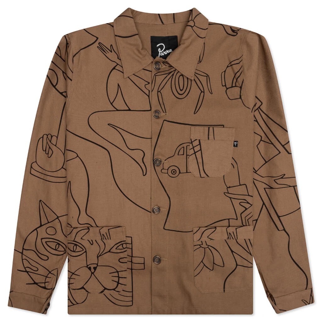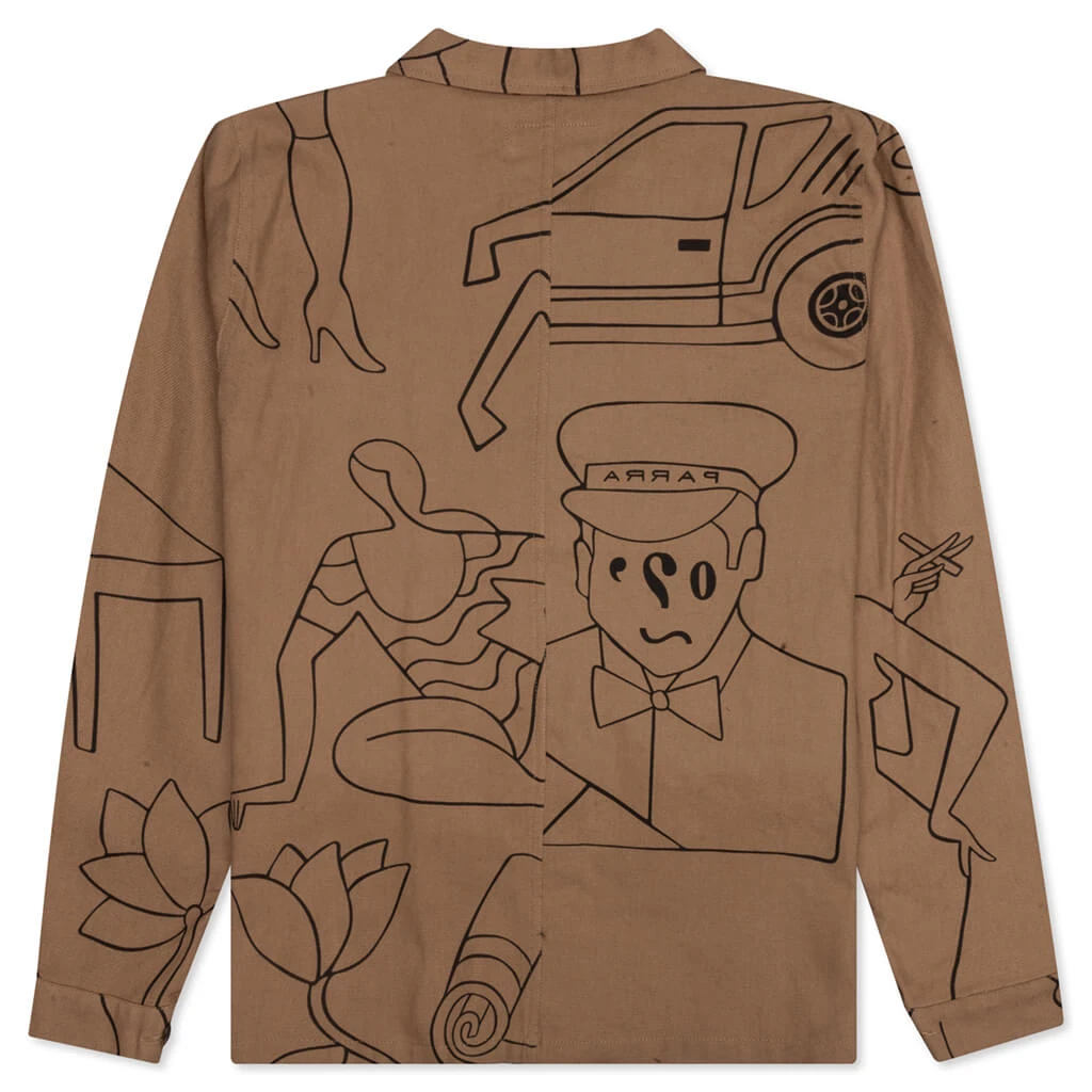 The By Parra Experience Life Worker Jacket is a must-have pop-art-inspired outerwear silhouette. The design is composed of cotton canvas and is secured by a button placket at the front. A classic pointed collar makes a statement, while the three patch pockets at the front offer a functional touch. The all-over print makes a statement, while the relaxed-fitting design is finished with button cuffs.