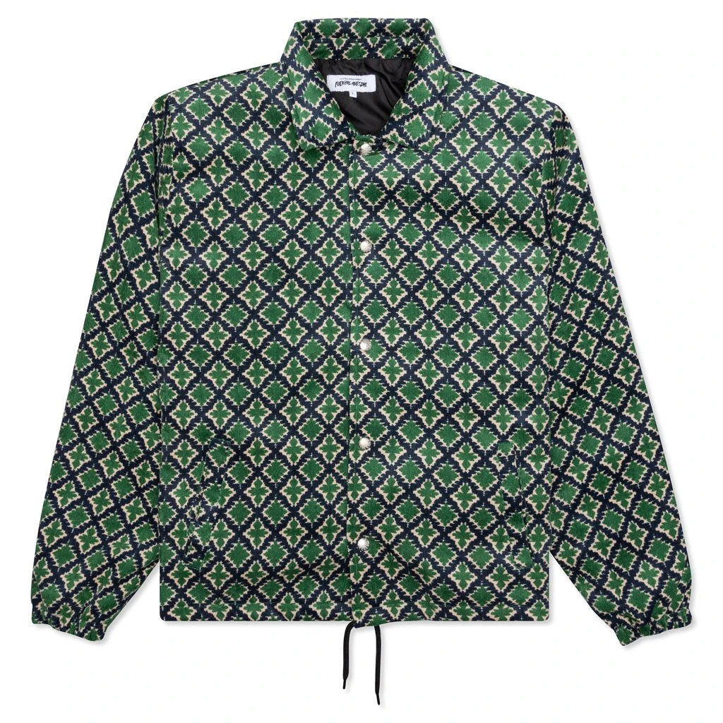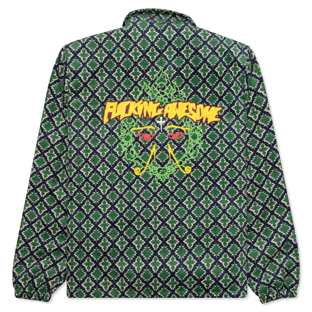 Founded in 2001 by skateboarding legend Jason Dill, and photographer Mike Piscitelli, Fucking Awesome has never been interested in whether or not people buy it. Ignoring the clothing industry’s norms of releasing quarterly collections, Fucking Awesome releases very limited run drops whenever they please. Pictured is the Fucking Awesome Eyes Coaches Jacket in Green.