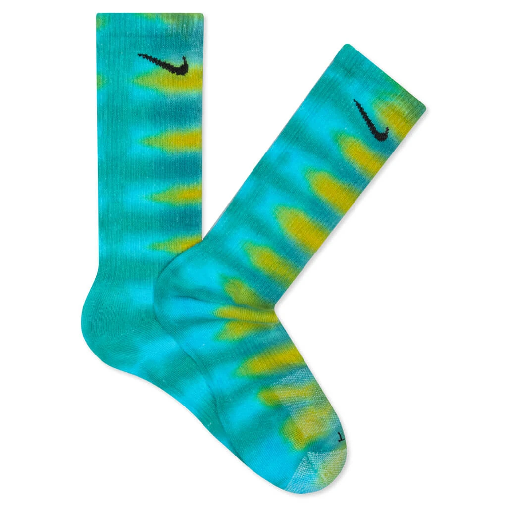The FEATURE x JamminOn Socks have gone through a unique tie-dye process for a one-of-a-kind psychedelic tie-dye design, thanks to world-renown tie-dye studio JamminOn. With a slight twist on the traditional Nike Crew Socks, the silhouette features a blend of high-quality materials that provide optimal Dri-FIT technology fit for everyday wear. Ribbed wrapping gives additional support to the arches, while a durable design is included for comfort surrounding the heels and toes.Â