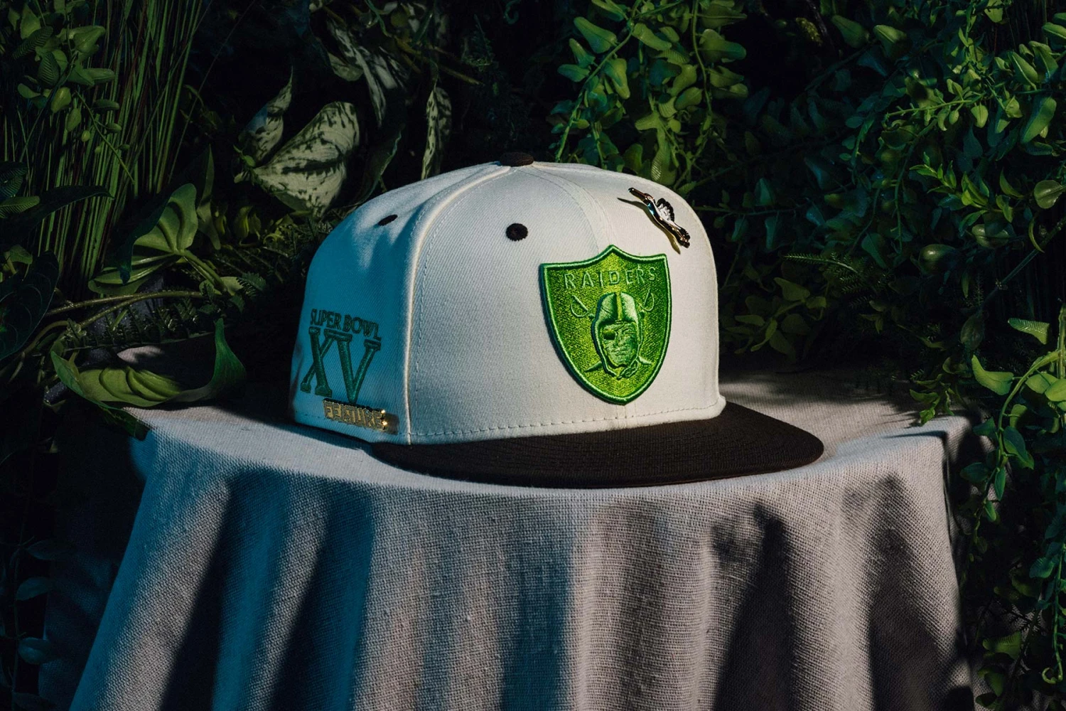 FEATURE and New Era join together once again to introduce the Bamboo 59FIFTY Fitted. Taking on a polyester construction, the fitted hat features woven eyelets along the crown for added breathability. A flat brim is placed, boasting a contrasting undervisor. An embroidered team logo patch resides at the face, while a Superbowl patch resides on the wearer’s right side. At the left side is an embroidered New Era flag logo. Included with the hat is an exclusive three-pack of gold-finished pins.