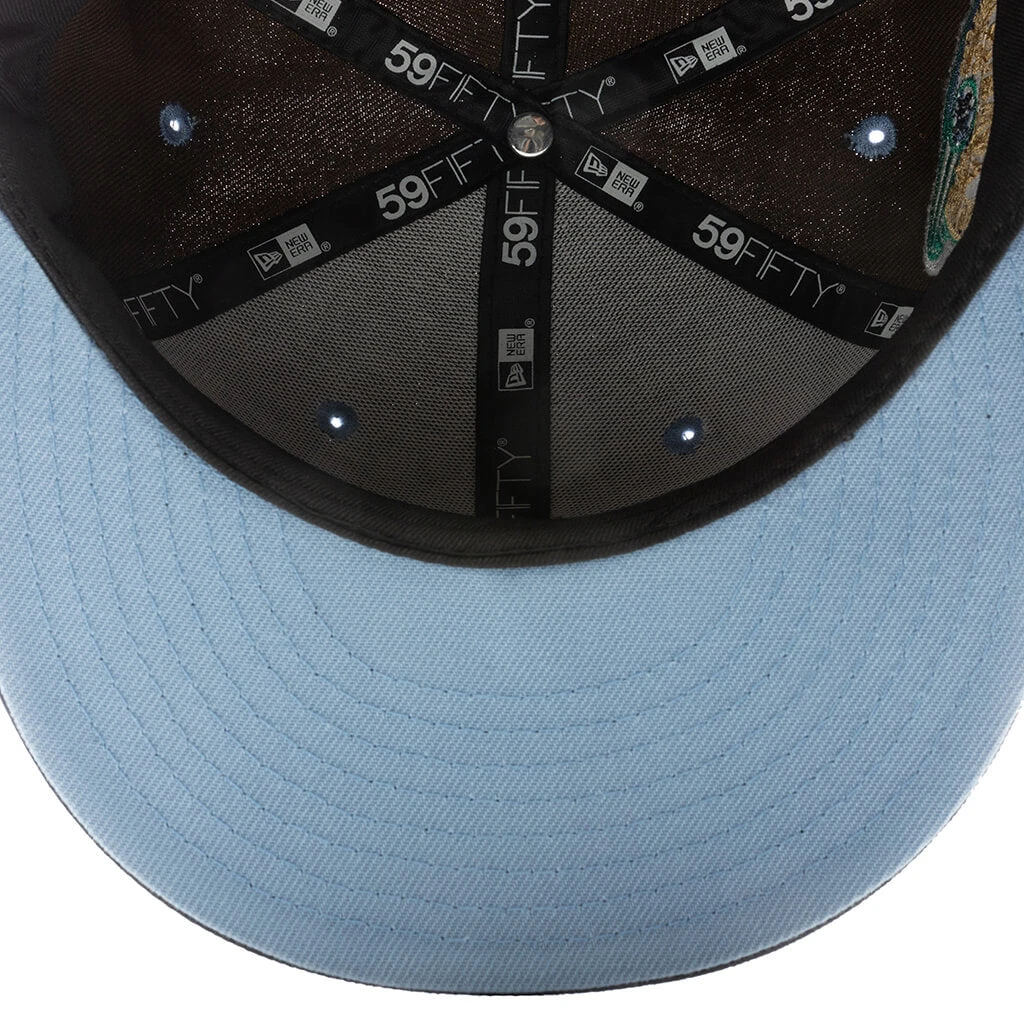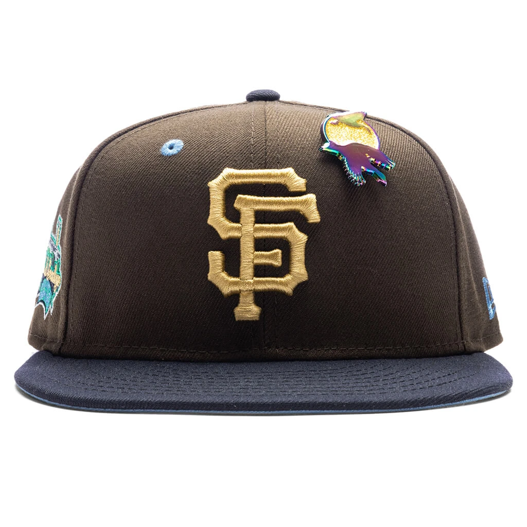 We continue our ongoing collaboration with heritage headwear brand New Era in the FEATURE x New Era ‘Golden Hour’ 59FIFTY Fitted. This exclusive headwear silhouette takes on a signature fitted design along with a polyester construction. Woven eyelets are scattered around the crown, while the primary spotlight is the embroidered team logo at the face of the silhouette. The flat brim sports a contrasting undervisor along with embroidered New Era branding at one side and World Series patchwork embroidered on the other. The three custom FEATURE pins wrap up the look.