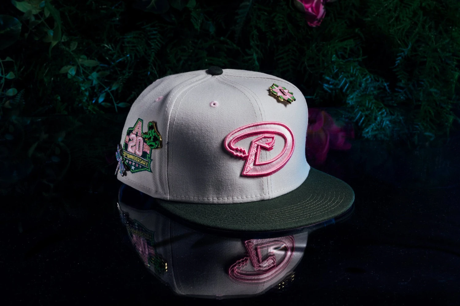 Representing purity, beauty, and prosperity, the FEATURE x New Era 59FIFTY Fitted ‘Lotus’ is inspired by the iconic lotus flower. The silhouette is cut entirely from polyester and incorporates woven eyelets on the crown for a breathable touch. A contrasting flat brim offers further dimension to the design. The silhouette features a raised and embroidered team logo at the face, along with a championship patch at the right side. An embroidered FEATURE script logo can be found at the rear. The hat is finished with three lotus-inspired pins for a finishing touch.