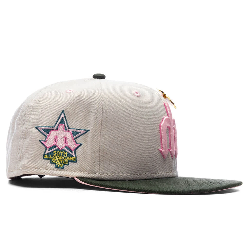 Representing purity, beauty, and prosperity, the FEATURE x New Era 59FIFTY Fitted ‘Lotus’ is inspired by the iconic lotus flower. The silhouette is cut entirely from polyester and incorporates woven eyelets on the crown for a breathable touch. A contrasting flat brim offers further dimension to the design. The silhouette features a raised and embroidered team logo at the face, along with a championship patch at the right side. An embroidered FEATURE script logo can be found at the rear. The hat is finished with three lotus-inspired pins for a finishing touch.