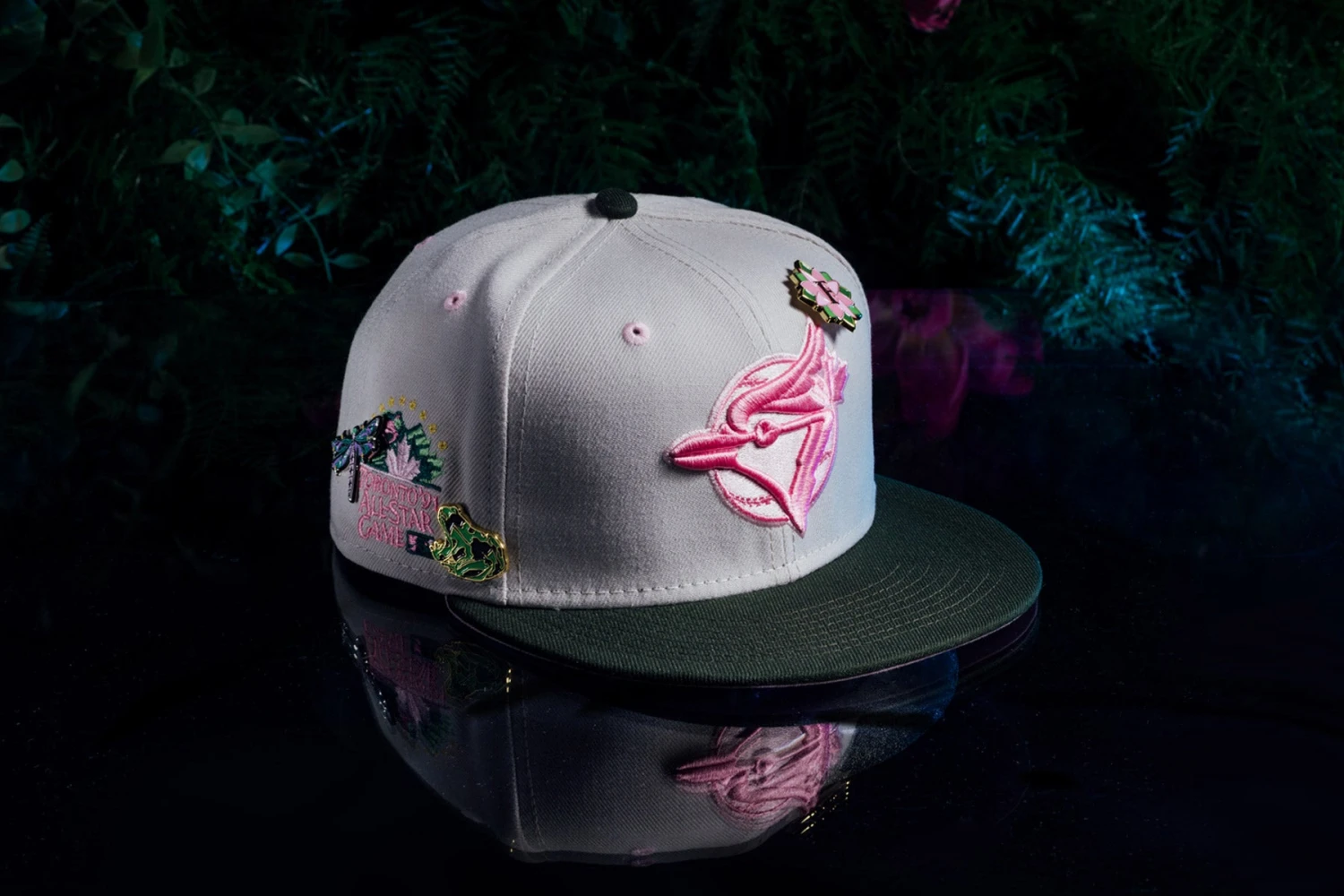Representing purity, beauty, and prosperity, the FEATURE x New Era 59FIFTY Fitted ‘Lotus’ is inspired by the iconic lotus flower. The silhouette is cut entirely from polyester and incorporates woven eyelets on the crown for a breathable touch. A contrasting flat brim offers further dimension to the design. The silhouette features a raised and embroidered team logo at the face, along with a championship patch at the right side. An embroidered FEATURE script logo can be found at the rear. The hat is finished with three lotus-inspired pins for a finishing touch.
