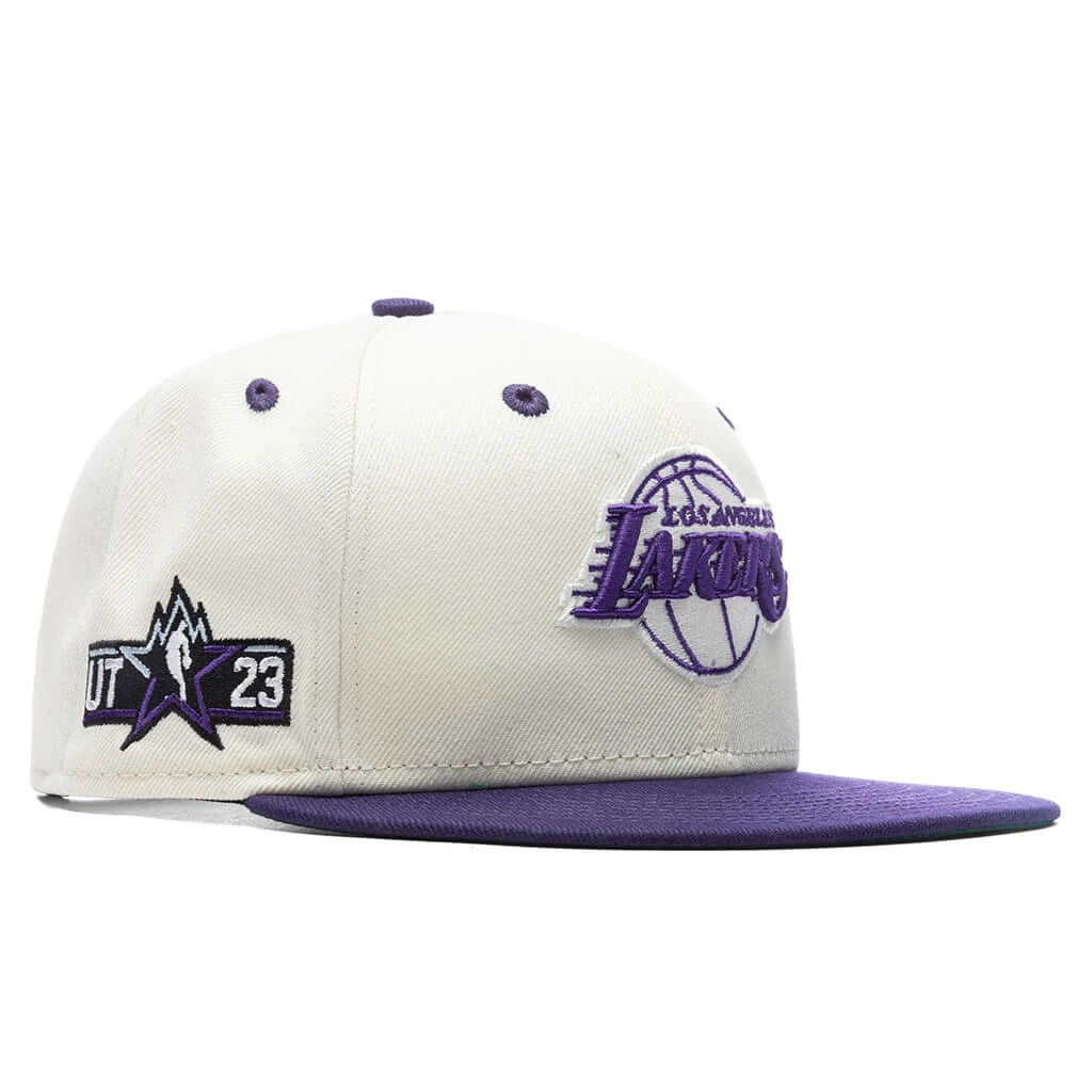 FEATURE joins New Era in spotlighting the iconic Los Angeles Lakers on the 9FIFTY Snapback. Composed of polyester, this snapback hat incorporates woven eyelets at the crown for added breathability. A contrasting flat brim is placed, while a team logo is embroidered on the face. An NBA All-Star patch can be found on the right side, while a New Era flag is seen on the left. The adjustable rear closure finishes the rest of the look.