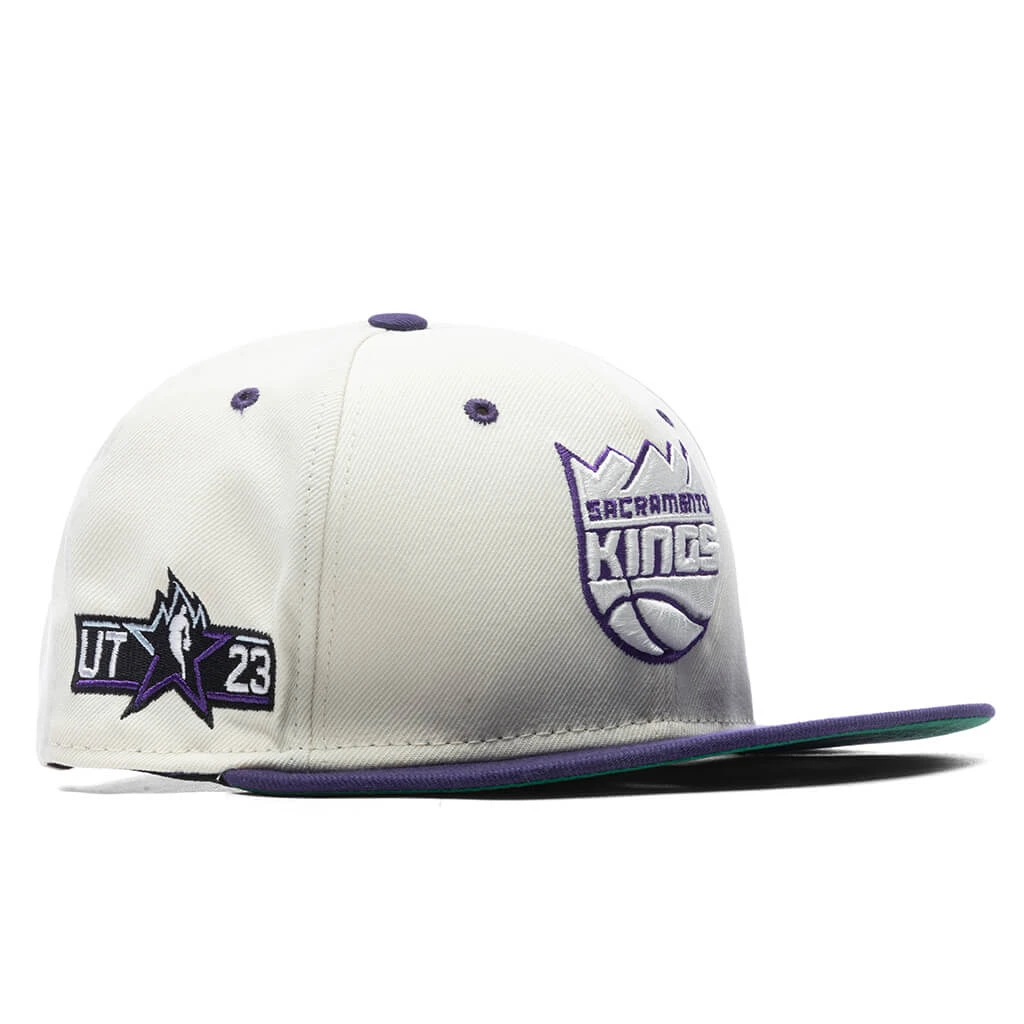 FEATURE joins New Era in spotlighting the iconic Sacramento Kings on the 9FIFTY Snapback. Composed of polyester, this snapback hat incorporates woven eyelets at the crown for added breathability. A contrasting flat brim is placed, while a team logo is embroidered on the face. An NBA All-Star patch can be found on the right side, while a New Era flag is seen on the left. The adjustable rear closure finishes the rest of the look.