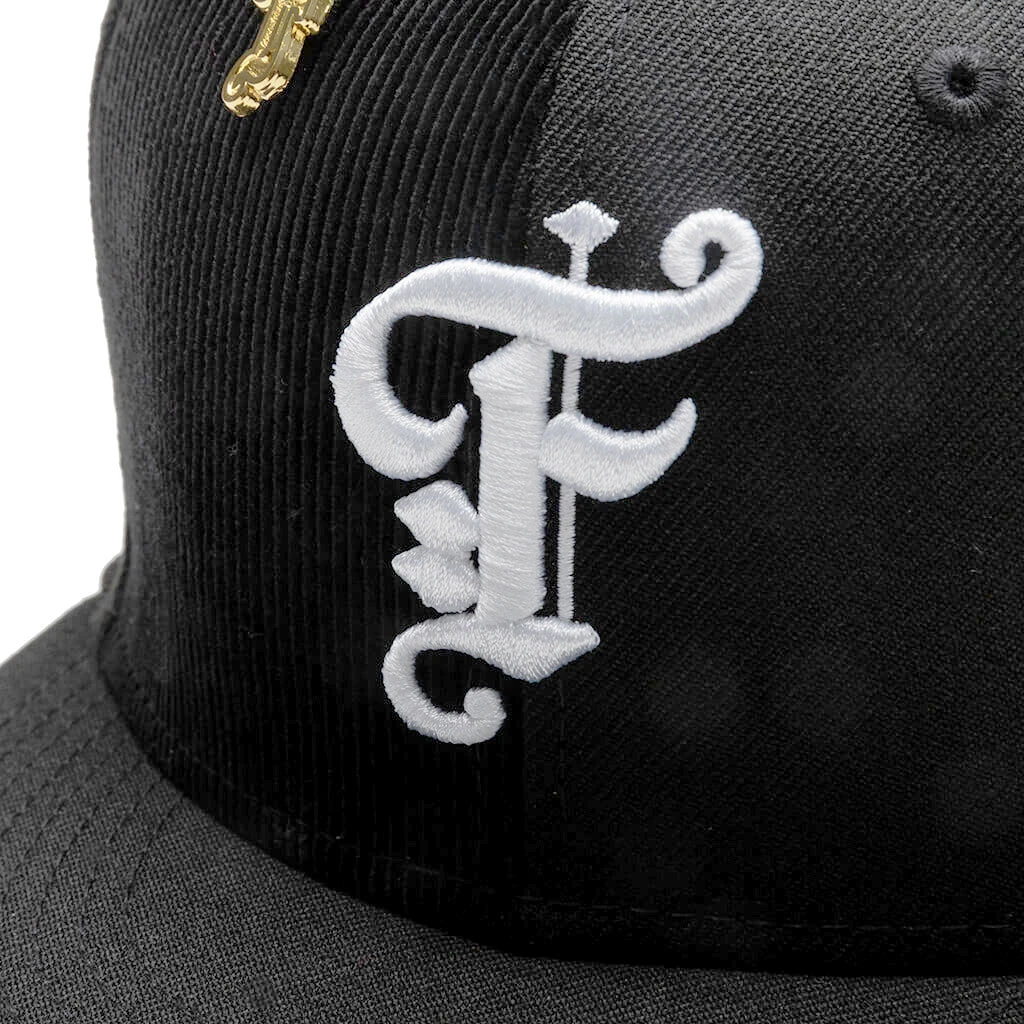 Our ongoing partnership with New Era continues in the FEATURE x New Era Old English F Fitted “Multi Panel.” The polyester-cut hat differentiates itself from others with its corduroy paneling seen at the front and sides. An embroidered FEATURE ‘F’ resides at the face, with script embroidery residing at the rear. Embroidered New Era branding resides on the left side panel, with the woven eyelets on the crown offering a breathable touch. The contrasting undervisor paired with the gold FEATURE pin completes the rest of the design.