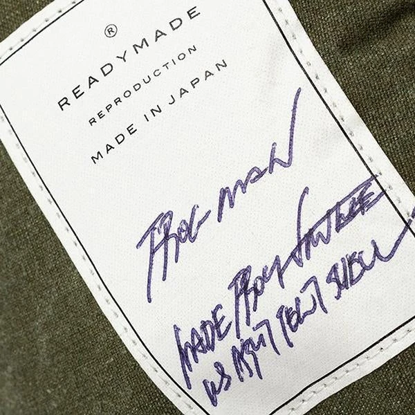 READYMADE was created in 2013 as the vision of designer Yuta Hosokawa. The brand’s theme was world peace. By upcycling military materials, Hosokawa thought turning items used for violence and death into items for pleasure would convey his wish for an end to all war. Pictured is the Readymade Frogman in Green.