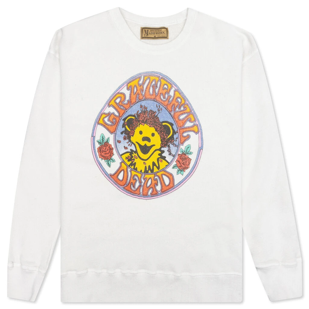 Represent your favorite brand in style with the Grateful Dead Crew Fleece from MadeWorn. Crafted from authentic cotton, this signature silhouette features a crew neckline with additional ribbed detailing that can be seen at the cuffs and hem. The silhouette has been hand cut, sewn, and distressed in Los Angeles, California. Screen-printed Grateful Dead graphics at the chest complete the rest of the look.