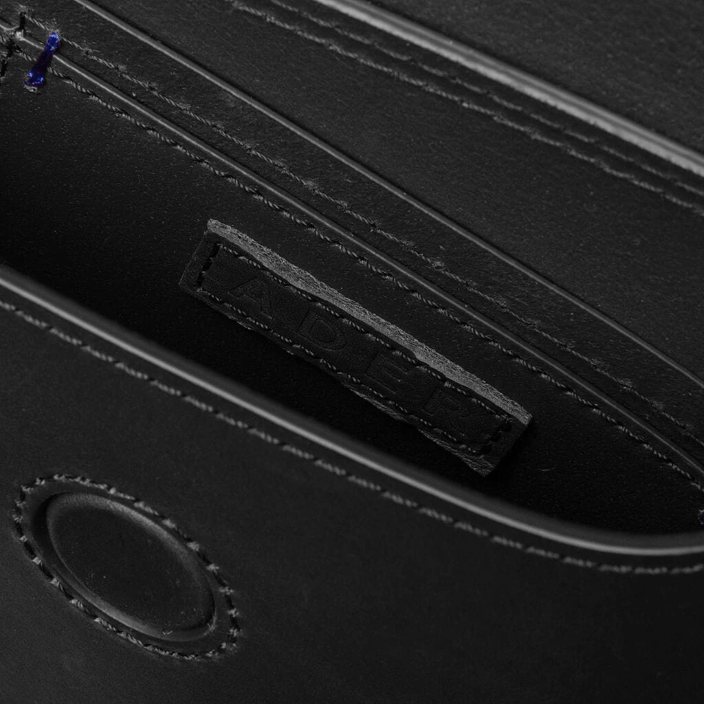 Based in Seoul, Ader Error started as an anonymous group of collectives in 2014. The mysterious brand focuses on oversized unisex pieces with emphasis on vibrant colors and heavy use of blue along their garments. Ader Error allows their masterful designs to transcend their identity and speak for themselves. Truly a testament to fashion, the Ader Error Gun Bag is composed of a 100% cowhide upper dressed with silver hardware and a signature brand stitch across the top. Pictured is the Ader Error Gun Bag in Black.