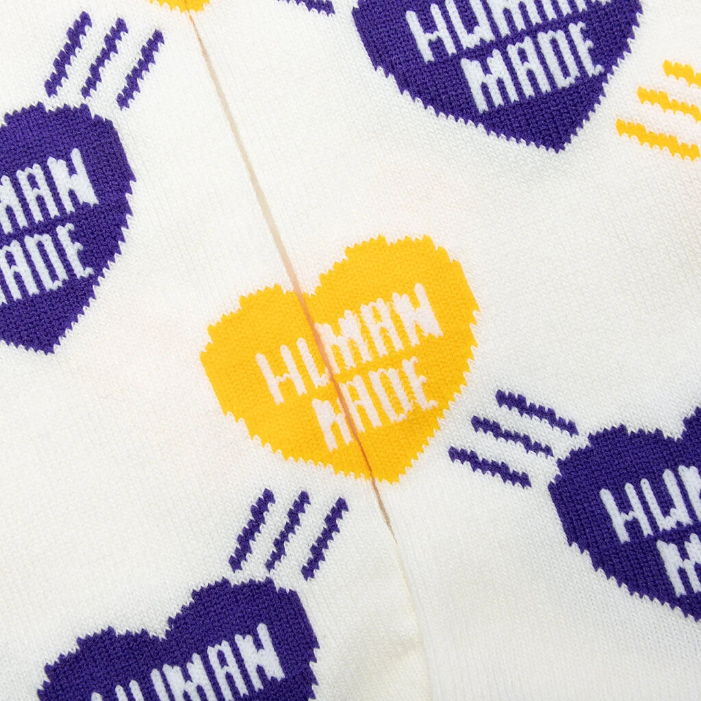 The Human Made Heart Socks make an impression on any accessory collection. Composed of cotton, acrylic, polyester, nylon, and polyurethane, the socks feature an all-over heart pattern in addition to reinforced cuffs for added dimension.
