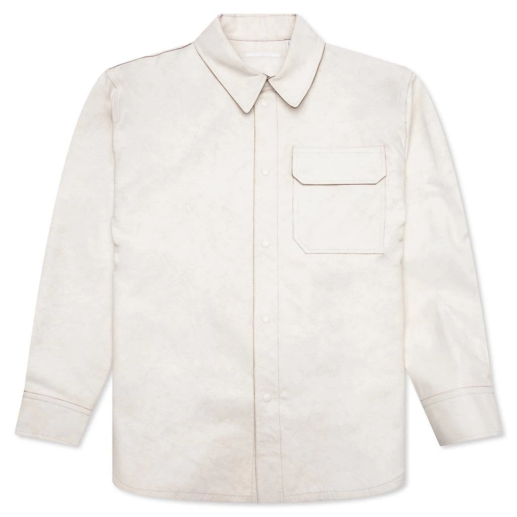 Taking on a contemporary aesthetic, the Leather Cargo Shirt Jacket from Helmut Lang is a must-have for any collection. The design features a pointed collar along with a front button closure. The front cargo pocket and slide slip pockets provide further functionality for a finishing touch.