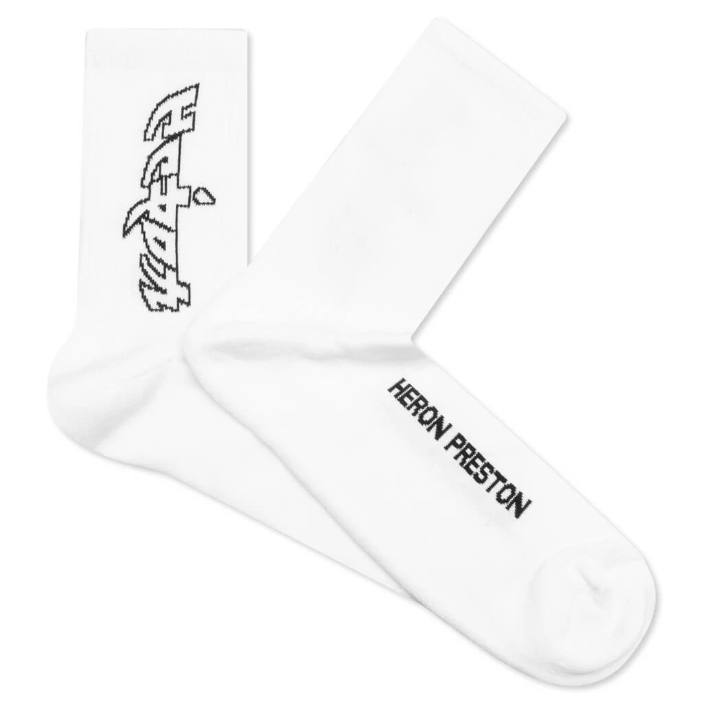 The Arcade Long Socks introduces the latest graphics from Spring 2021 Collection knitted upon its side leg. A blend of fabrics provides a comfortable fit while showcasing signature Heron Preston branding upon its construction.