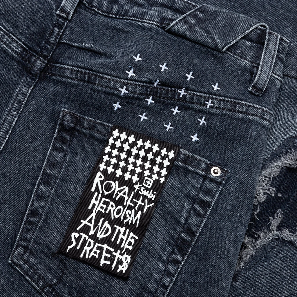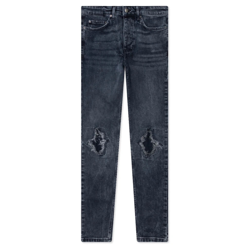 The construction of the Ksubi Chitch Jeans is presented in its latest colorway known as Blue Kolla. Made with quality Turkish stretch denim, the jeans feature a washed-out aesthetic for a worn-in complexion. Ksubi’s traditional hang tag and cross embroidery can be seen on the rear side while a slim fit completes its design.