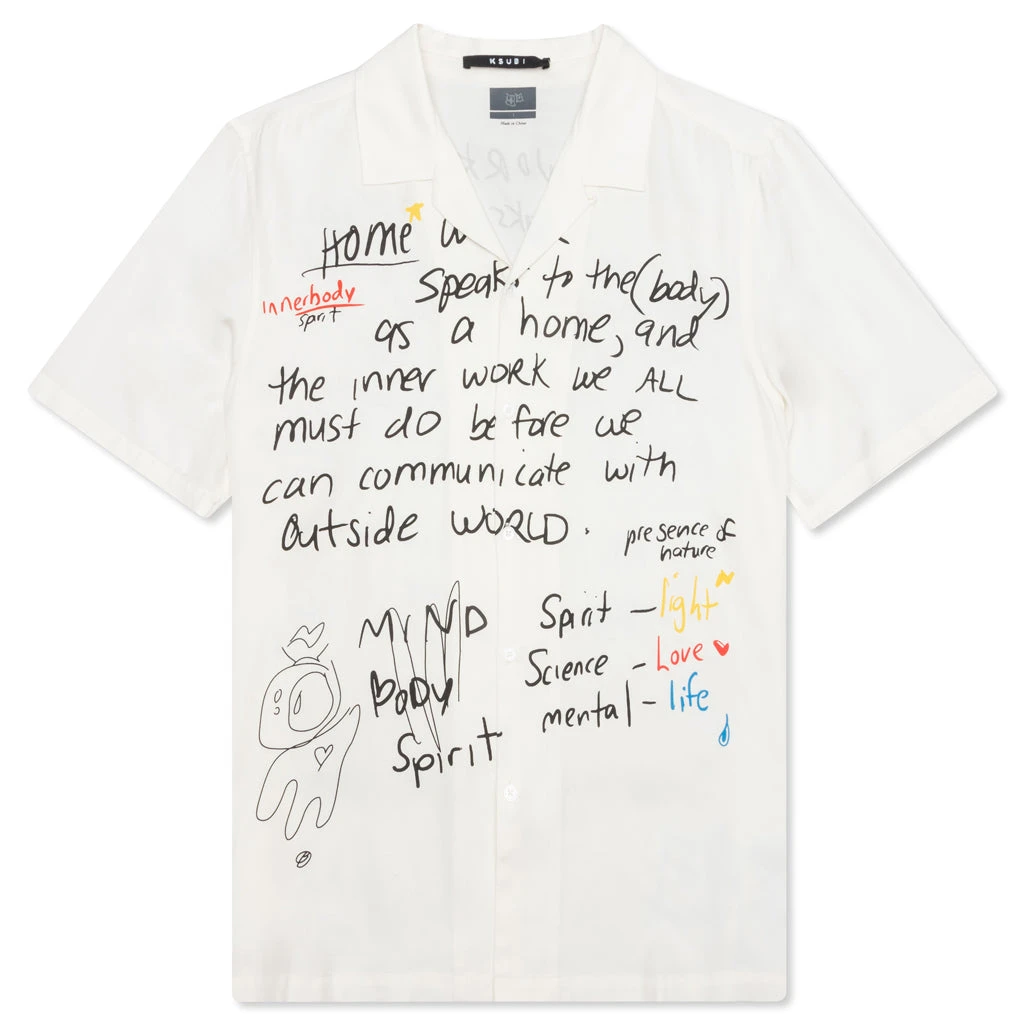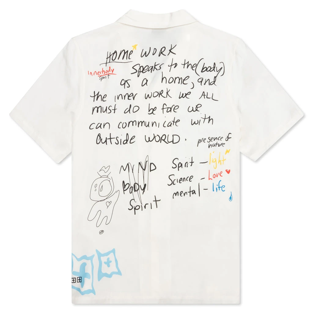Iconic streetwear brand Ksubi is well known for elevating the everyday piece of fashion, as seen in the Homework S/S Shirt. The silhouette of the shirt features artwork scattered over the design in a printed and embroidered design. A spread collar, as well as a button-up closure, is included to complete the look.