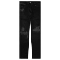 Ksubi’s Van Winkle Loaded makes an impression with its premium aesthetic. Made for a skinny fit, the silhouette features a worn wash along with rips and repair patchwork details. Unique angled belt loops and a front fly seam detail make an impression. Signature Ksubi branding, a button fly, and a five-pocket design solidify the remainder of the design.