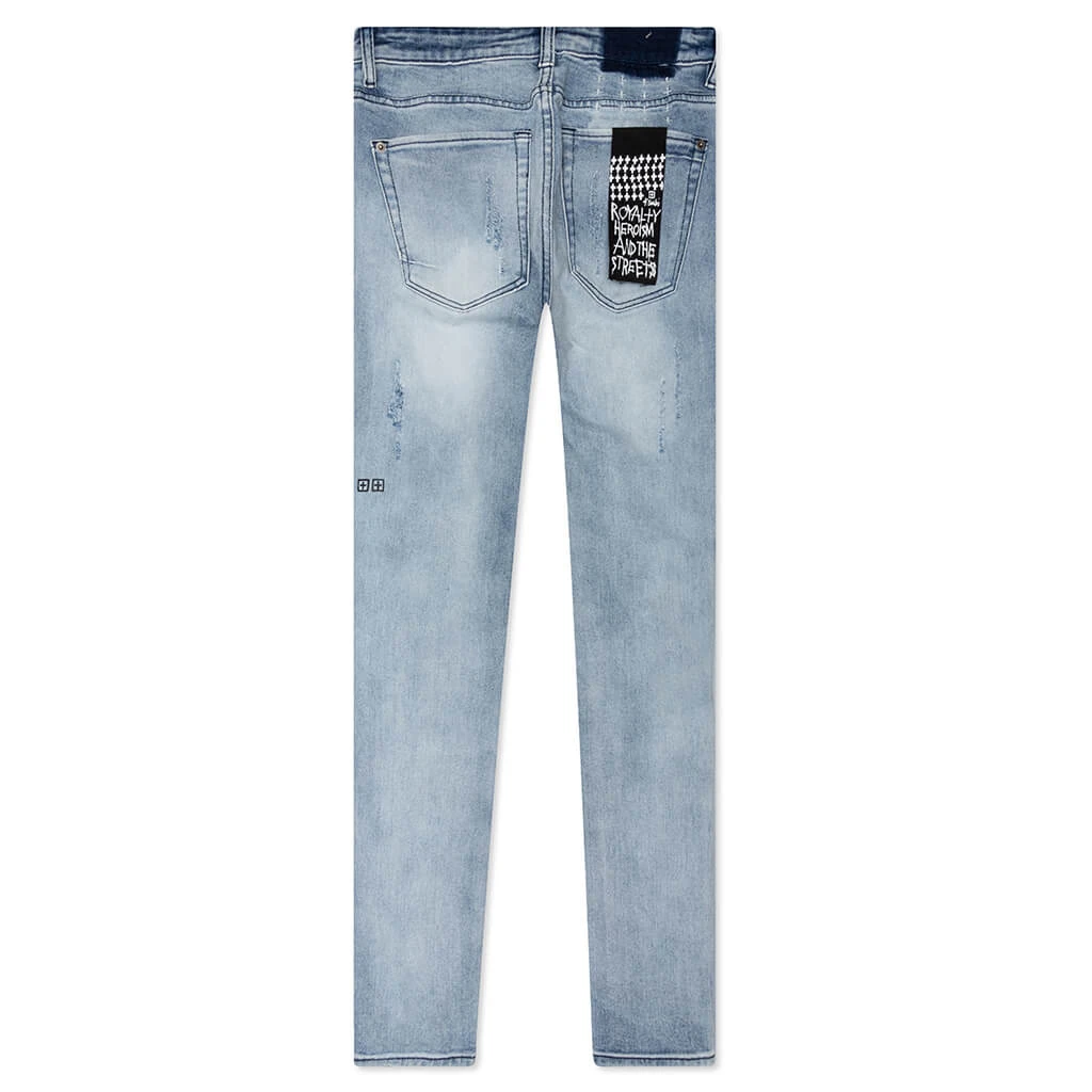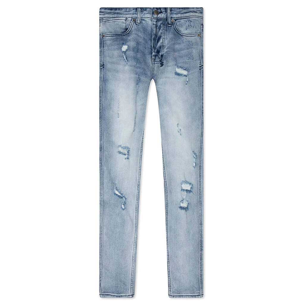 The Van Winkle jean is a skinny fit denim from thigh to ankle featuring a shorter rise. The jeans are made utilizing premium stretch denim and also features five pockets. Ksubi’s signature cross stitching and branded patch are displayed on the backside of the silhouette.