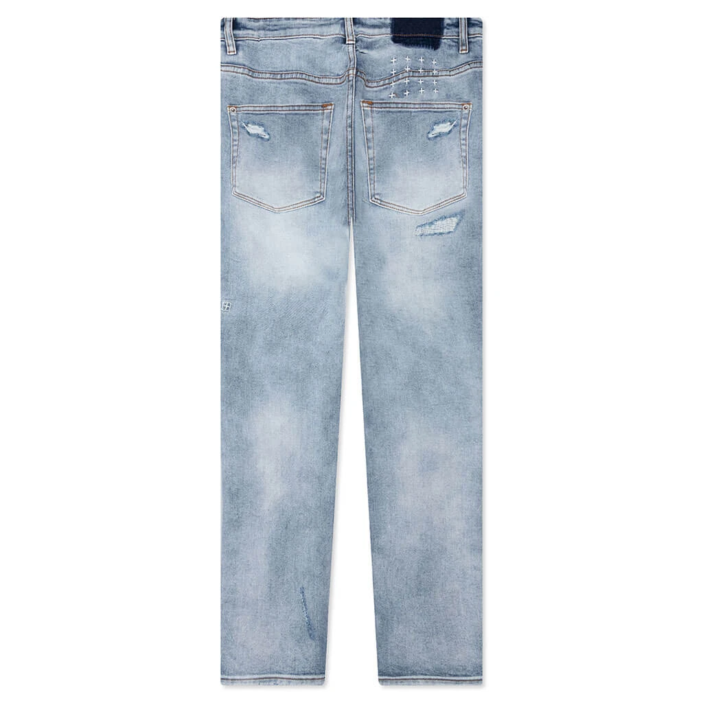 Made for a mid-rise waist, the Kusbi Wolfgang Ghosted jeans take on a cotton and spandex blend. The jeans feature knee deconstruction along with light grinding and signature Ksubi branding. The zip fly and five-pocket design wrap up the look.