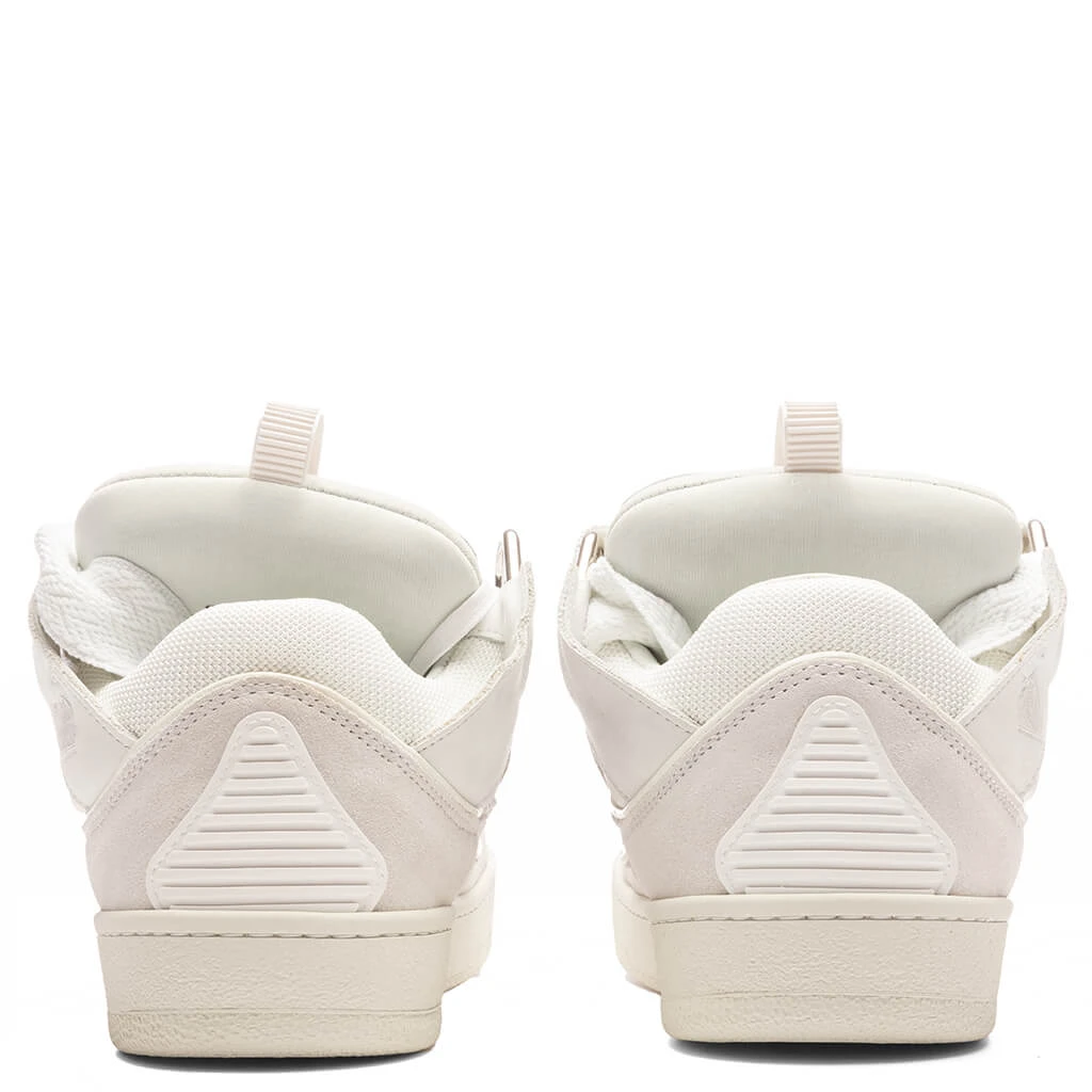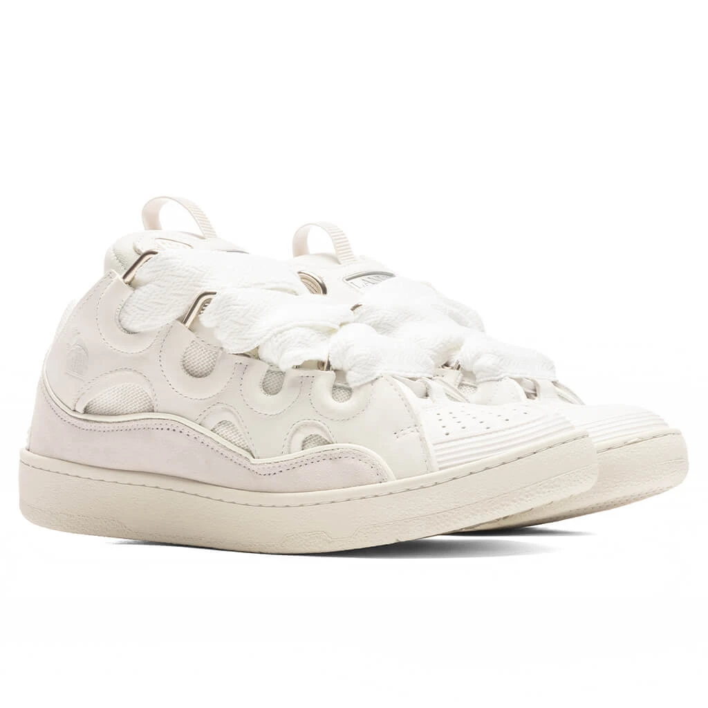 The Lanvin Curb Sneakers make an impression on any sneaker rotation. The elevated design is inspired by the ‘90s with its confident design and exaggerated dimensions. A blend of calfskin leather, suede, and mesh take up the upper. Its rounded shape receives added comfort with a padded tongue and curved metallic eyelets. The double-waxed herringbone laces add further dimension to the look. A rubber outsole underneath solidifies the rest of the design.