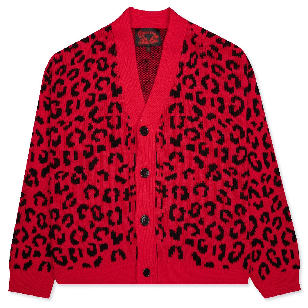 Siberia Hills was founded in 2017 by Daf Orlovsky, with the brand’s name drawing a parallel to his Siberian Roots. The creative inspiration came from Daf failing out of Parsons Design school and then taking a trip to the Himalayas and India which generated his creative spark. Siberia Hills is known for its anime and sci-fi gothic garments, but the brand’s creativeness expands beyond much further. Pictured is the Siberia Hills Leopard Cardigan Sweater in Red.