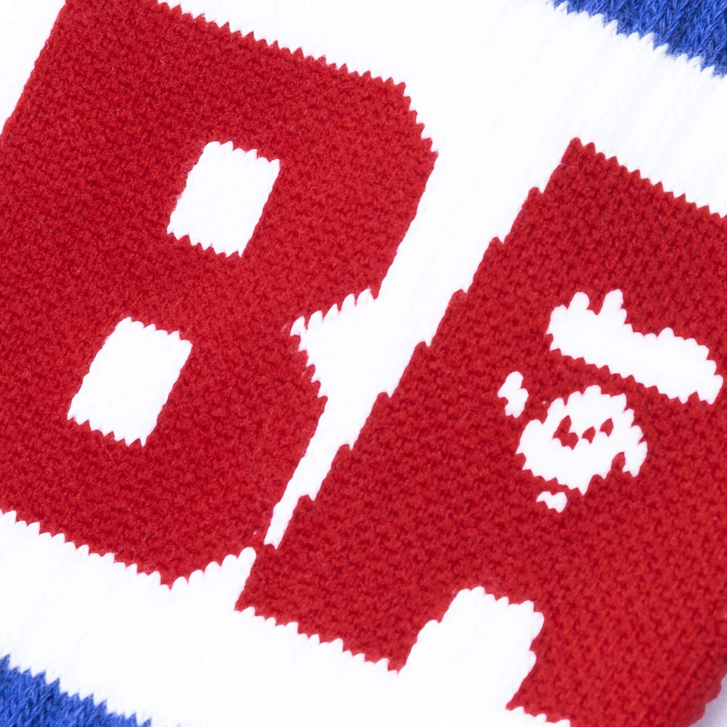 Bape’s Line Socks take on a premium blend of acrylic and cotton. They feature ribbed detailing along with stitched lines. The stitched graphics and branding wrap up the remainder of the look.