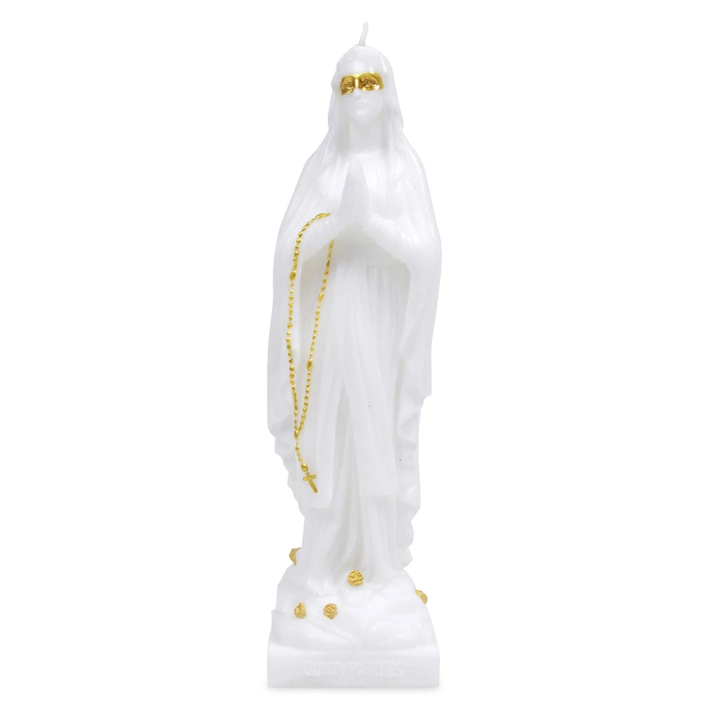 Wacko Maria’s religious references are present in the Maria Candle. The candle features construction made of complete wax, while gold details are placed subtly throughout the design. Branding at the front completes the design.