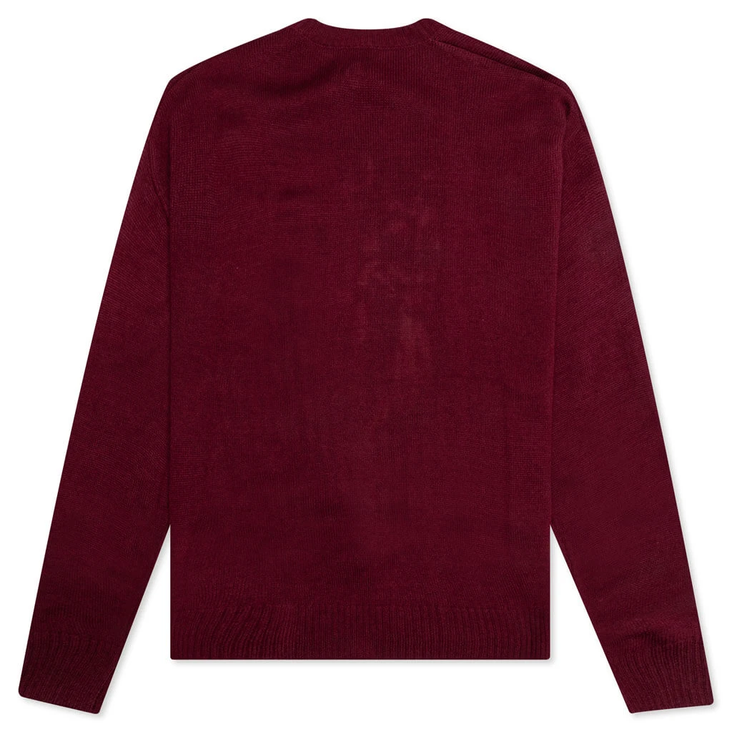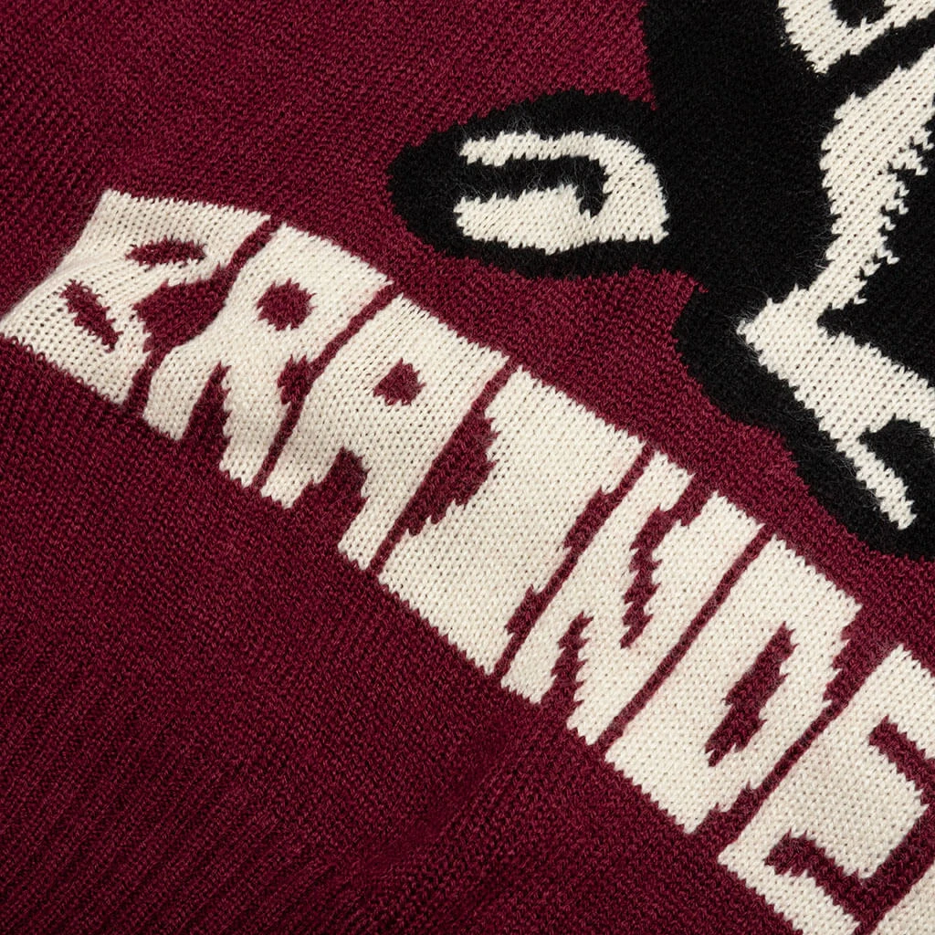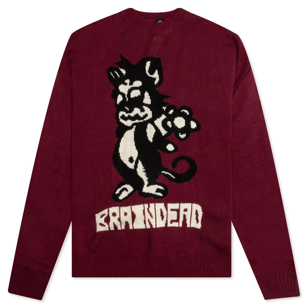The Brain Dead Meow Knit Sweater is a must-have for any streetwear fan. The silhouette is crafted from a blend of acrylic and wool, resulting in its unique aesthetic. Ribbed detailing is seen at the neckline, cuffs, and hem. Stitched Brain Dead branding and graphics reside at the front, making a bold statement.