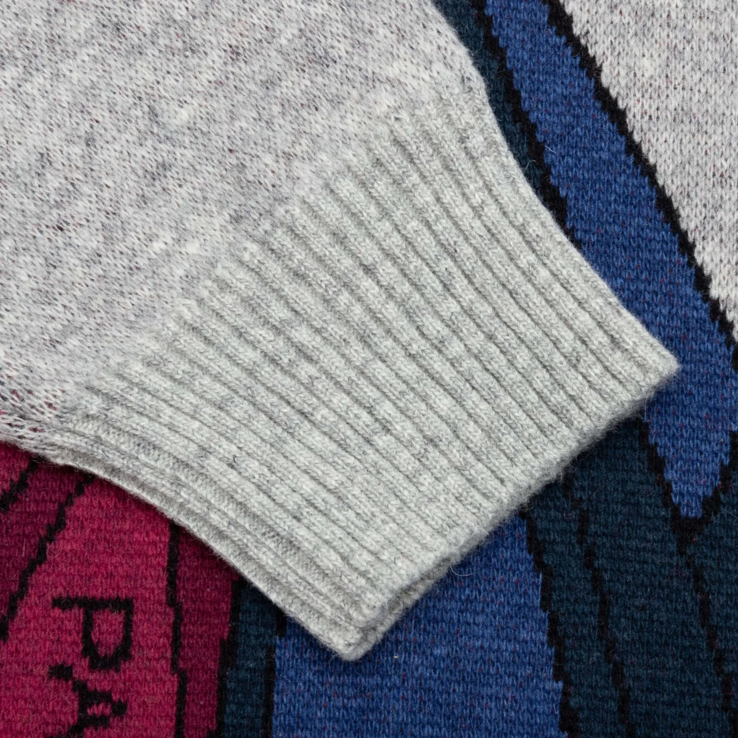By Parra’s signature aesthetics shine through in the No Parking Knitted Cardigan. This garment uses Italian custom-dyed yarn in this unique jacquard car design. Composed of 80% lambswool, this elevated cardigan is ideal for any rotation. A button-down closure and ribbed trims complete the look.