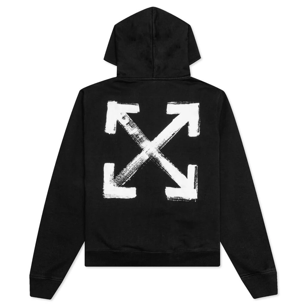 The Off-White Paint Arrow Slim Hoodie makes an impression on any streetwear apparel rotation. Composed of cotton, the silhouette spotlights a drawstring hood along with a kangaroo pocket. Rib-knit detailing rests at the trims. Screen-printed Off-White branding at the chest paired with the rear arrow motif graphics wraps up the entirety of the design.