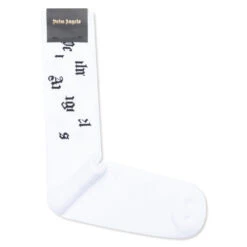 Combining both high end quality and skate culture is Palm Angels specialty. The Italian based brand presents the Broken Logo Socks. A deconstructed look is knitted along the collar of the sock. Using cotton and spandex, the sock is comfortable and conforming.