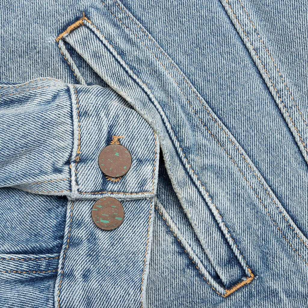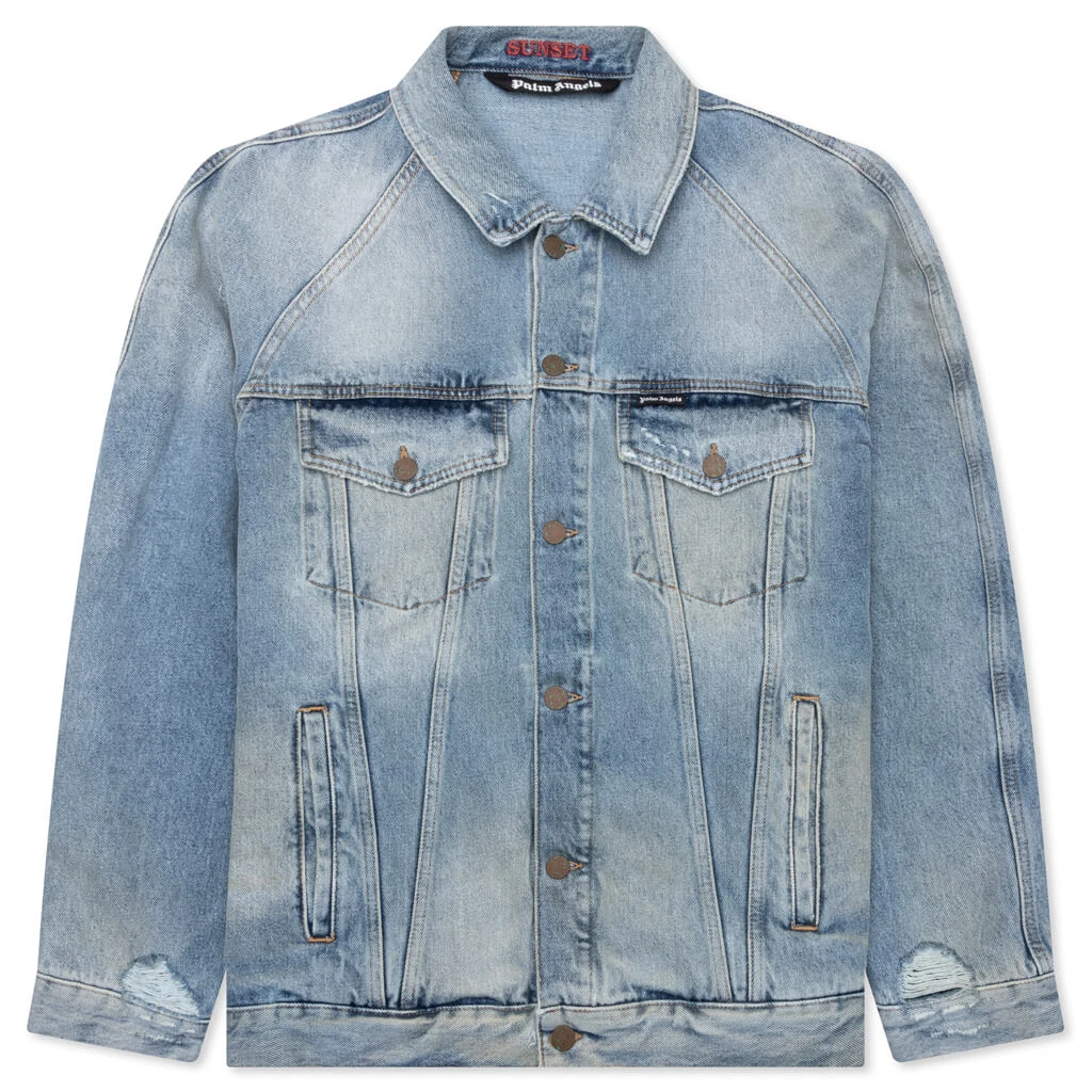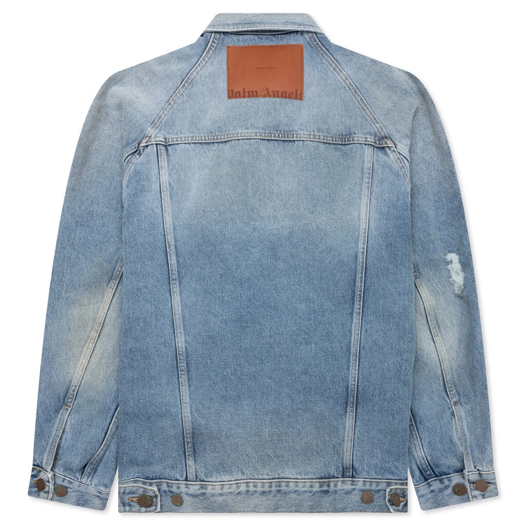 Palm Angels’ Light Wash Sunset Loose Denim Jacket makes a statement with its premium aesthetic. Cut from cotton, the design features polyester lining for comfort. A button-down closure is placed, while the spread collar and double welt chest pockets are placed. The leather logo patch completes the design.