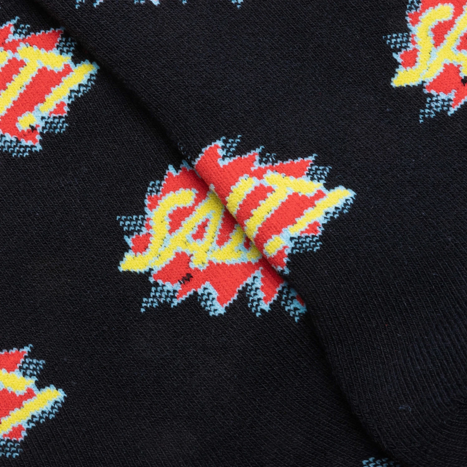 Add the Saint Michael POW Sock into your rotation. The cotton-cut socks incorporate ribbed detailing at the top. A comic-inspired graphic is placed throughout, finishing the look.