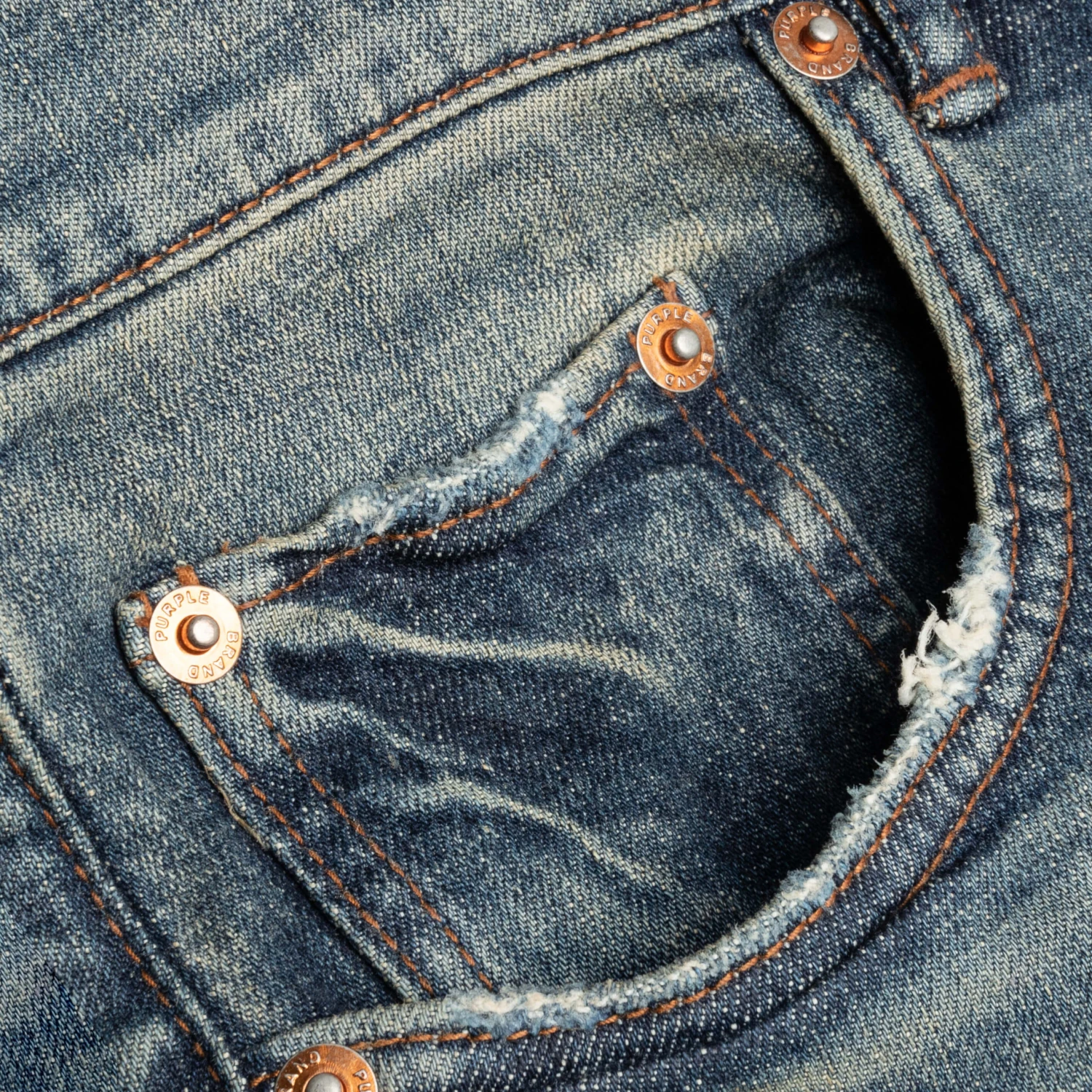 Upgrade your denim rotation with the Purple Denim P001 silhouette. Arriving in a blend of cotton and lycra, the silhouette is made for a low rise and skinny fit. The design comes with a signature Purple hangtag and lined back pockets and yoke for added comfort and shaping. Reinforced belt loops are seen for further durability, while the hidden back pocket rivets and button fly offer further detailing. The distressing and splatter detailing wrap up the design.