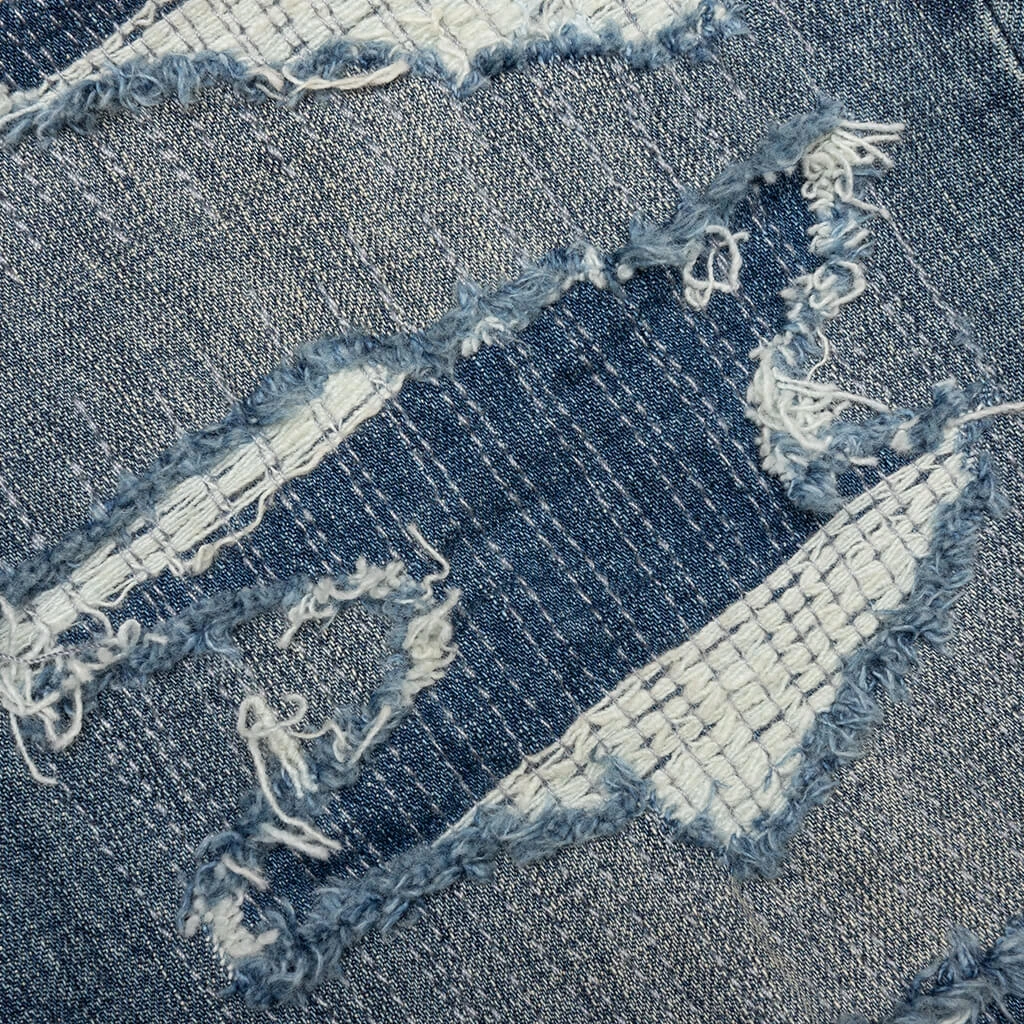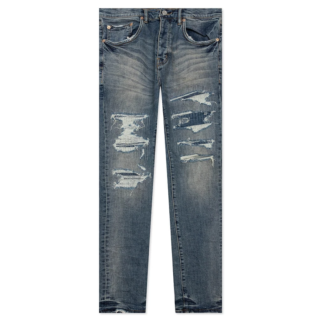 The latest Purple Denim P001 silhouette features a blend of cotton and elastane, resulting in a comfortable experience. The five-pocket silhouette spotlights a 3D wrinkle effect paired with a leather logo tag. Riveted pockets at the front pair seamlessly with the hidden back pocket rivets. The lined detailing paired with the hand-discolored and distressing finish the look.